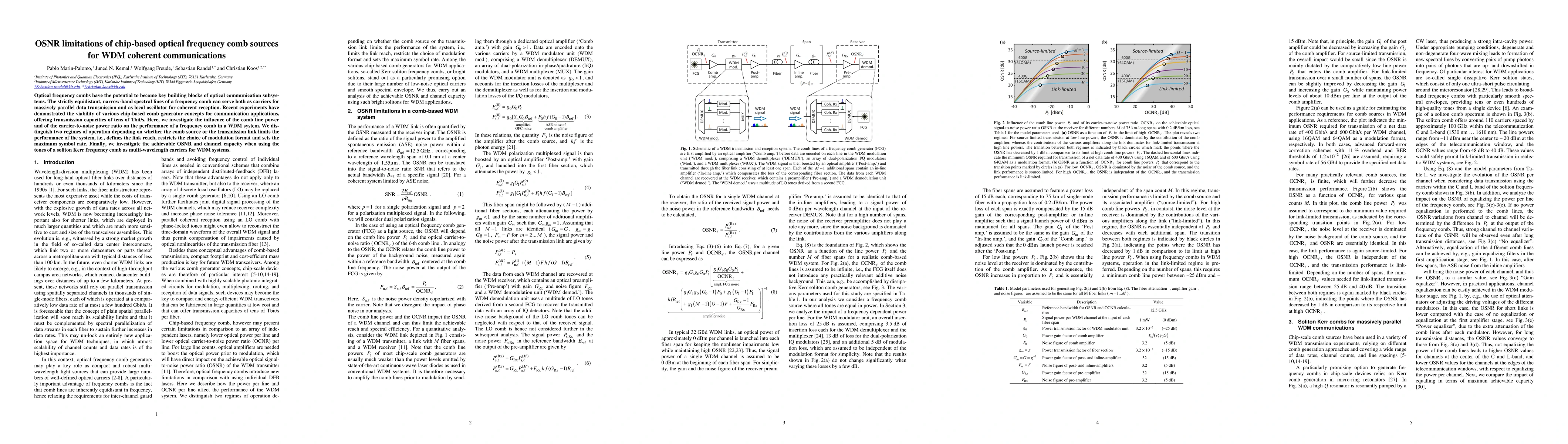 This paper explores the optical signal-to-noise ratio (OSNR) limitations of chip-based optical frequency combs in wavelength-division multiplexing (WDM) coherent communication systems. It investigates how comb line power and carrier-to-noise ratio affect performance, distinguishing between comb source and transmission link limitations, and evaluates the OSNR and channel capacity using soliton Kerr frequency combs.