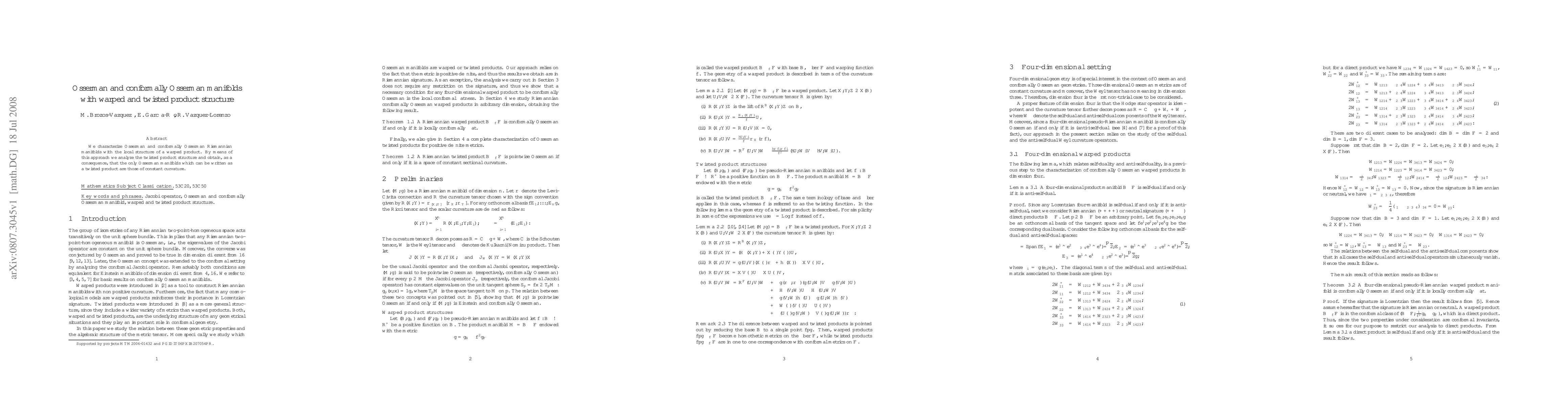 This paper characterizes Osserman and conformally Osserman Riemannian manifolds with warped product structures and analyzes their twisted product structures, concluding that only manifolds of constant curvature can be expressed as twisted products.