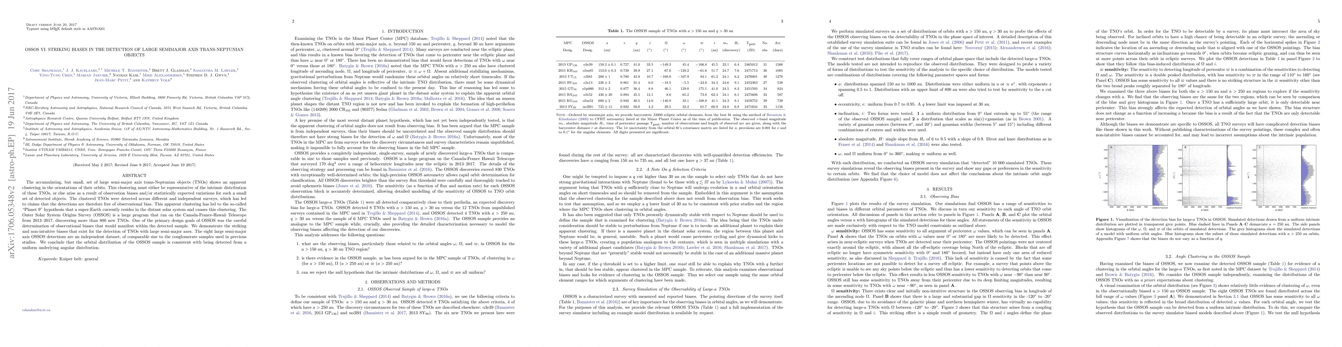 The OSSOS survey reveals significant observational biases affecting the detection of large semi-major axis trans-Neptunian objects (TNOs), challenging the apparent clustering that supports the "Planet 9" hypothesis. The study concludes that the detected TNOs likely originate from a uniform underlying angular distribution rather than an intrinsic clustering.