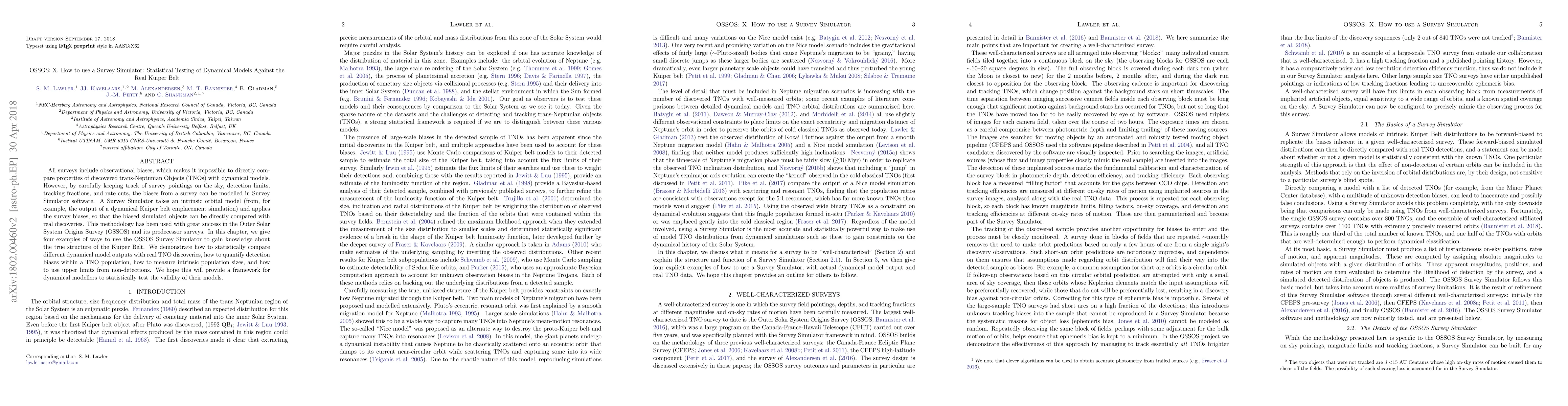 This paper outlines the use of the OSSOS Survey Simulator to model observational biases and statistically compare dynamical models of the Kuiper Belt with real discoveries. It provides examples of how to assess model validity, quantify detection biases, measure intrinsic population sizes, and utilize upper limits from non-detections.