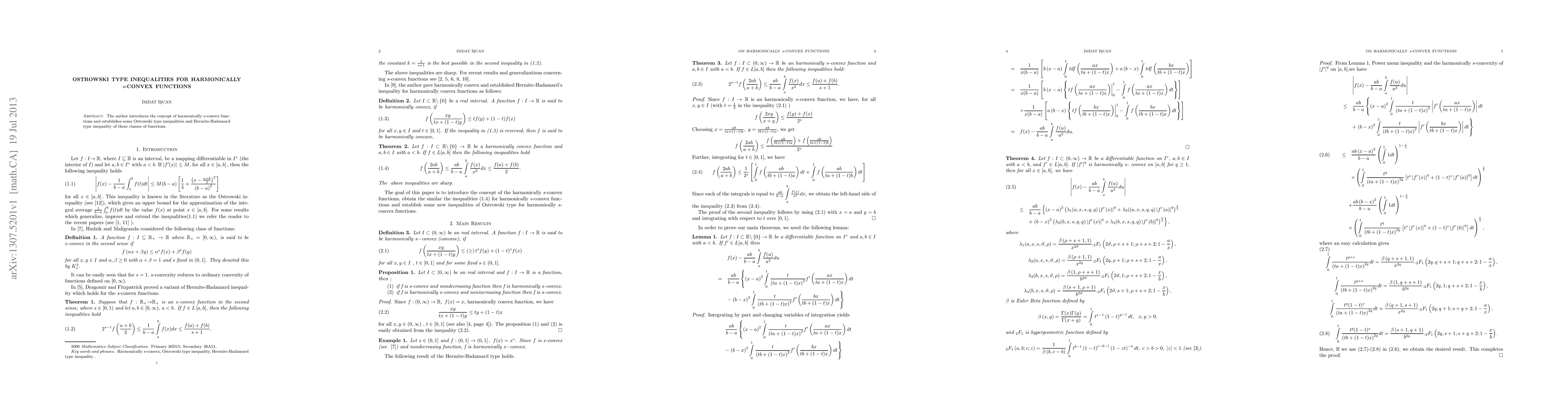 Summary: This paper introduces harmonically s-convex functions and proves Ostrowski type inequalities and Hermite-Hadamard type inequalities for these functions, expanding on classical convexity concepts.