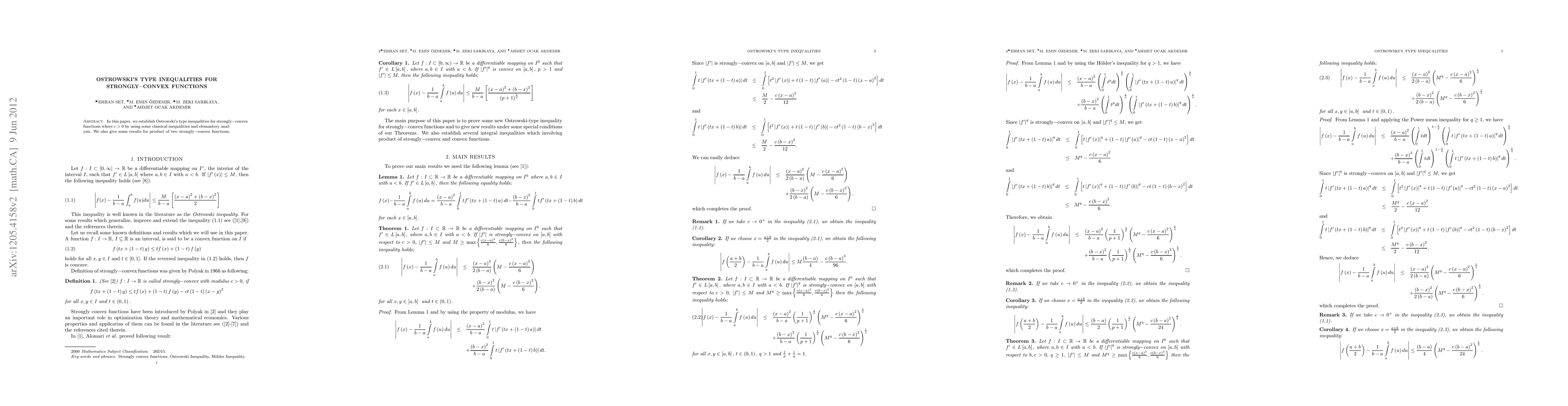This paper establishes Ostrowski's type inequalities for strongly-convex functions with a positive coefficient, using classical inequalities and elementary analysis, and also explores the product of two strongly-convex functions.
