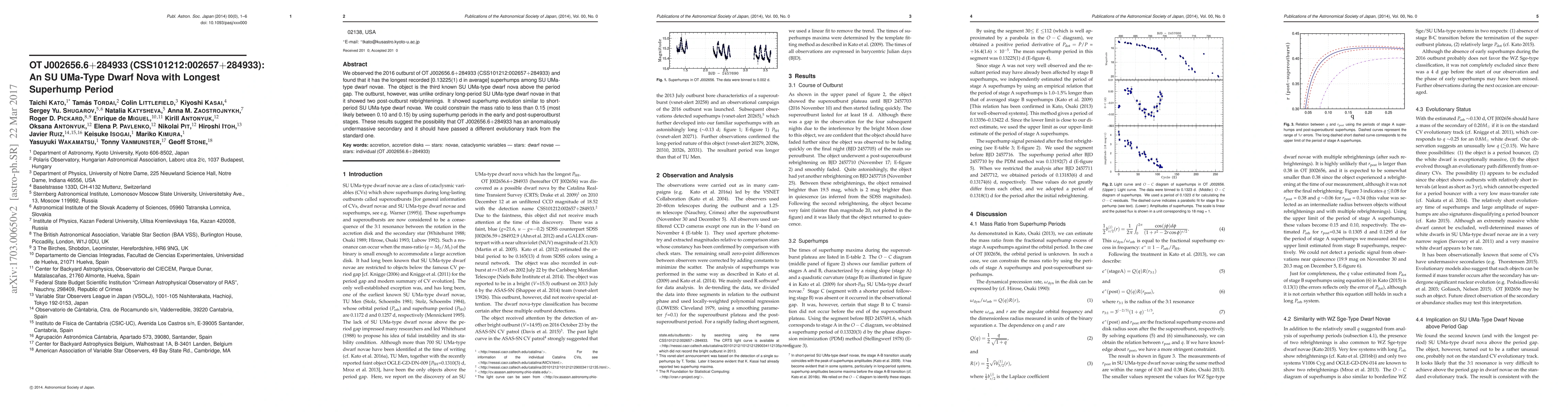 OT J002656.6+284933 is an SU UMa-type dwarf nova with the longest recorded superhump period, and it is the third known above the period gap. Its 2016 outburst exhibited two post-outburst rebrightenings and an anomalous mass ratio, suggesting an unusual evolutionary path.