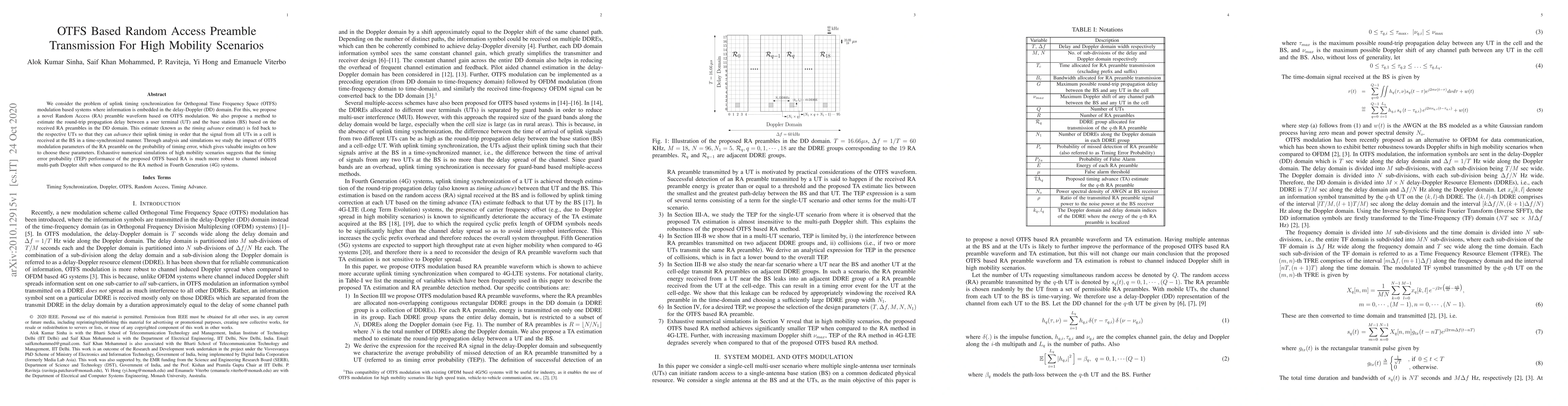 A new OTFS-based random access preamble transmission method improves timing synchronization for high mobility scenarios, offering better resistance to channel-induced multi-path Doppler shift compared to traditional 4G systems.
