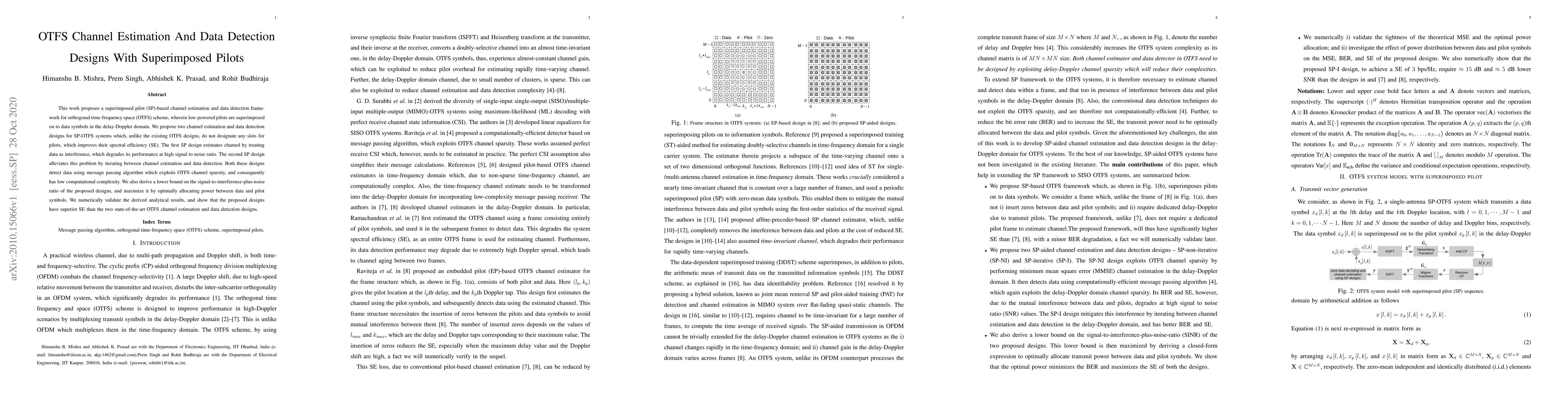 This paper proposes a superimposed pilot (SP)-based framework for OTFS channel estimation and data detection, enhancing spectral efficiency by integrating pilots into data symbols. It introduces two SP designs, one treating data as interference and another iterating for better performance, both leveraging OTFS channel sparsity for low complexity.
