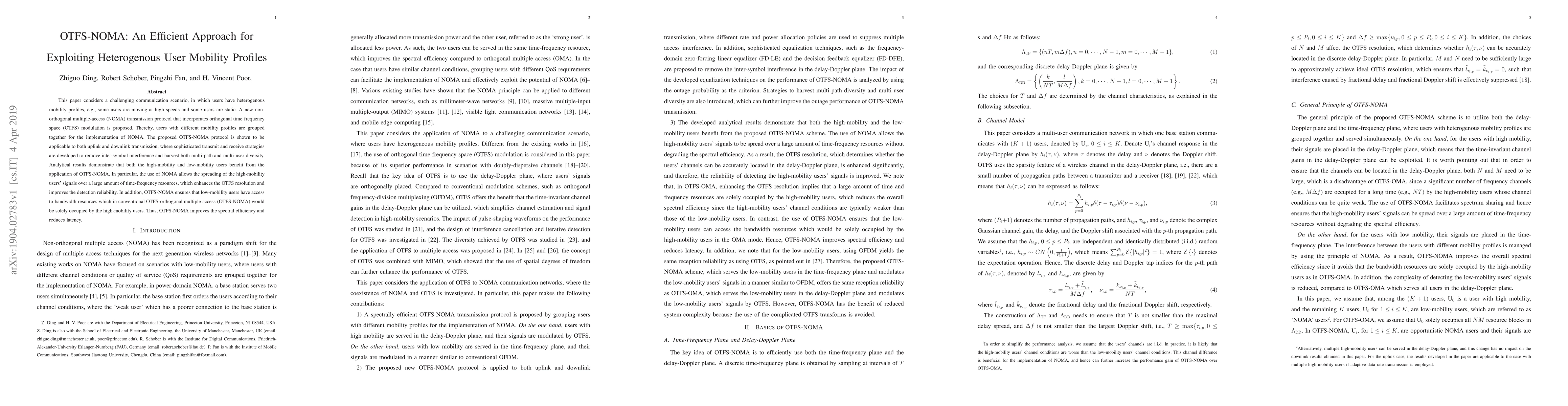 This paper proposes an OTFS-NOMA protocol for non-orthogonal multiple access in scenarios with heterogeneous user mobility profiles, enhancing spectral efficiency and reducing latency by leveraging multi-path and multi-user diversity. The protocol benefits both high-mobility and low-mobility users through improved detection reliability and bandwidth allocation.
