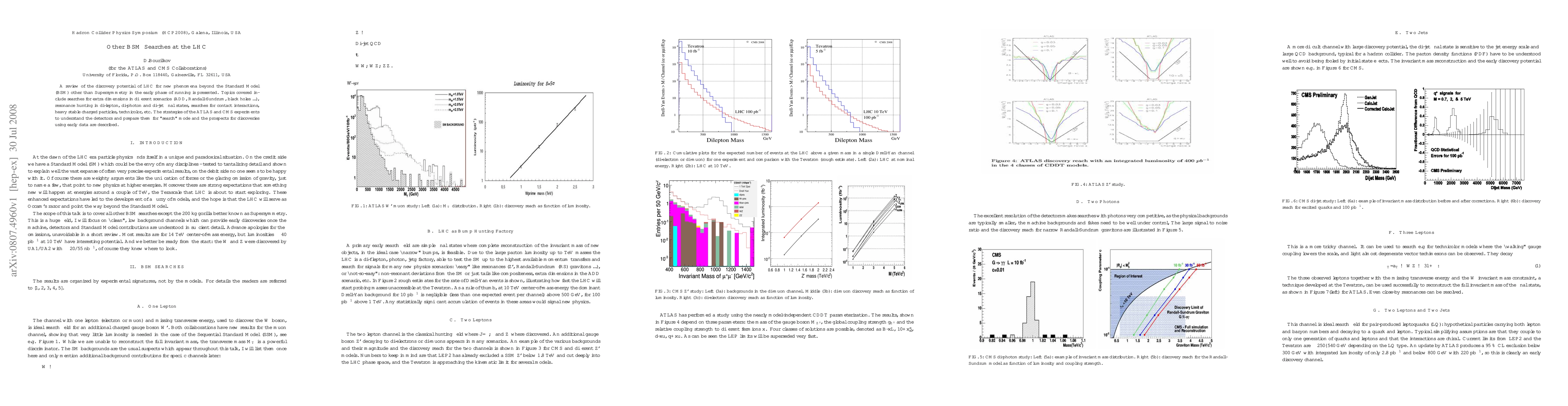 A review of the discovery potential of LHC for new phenomena beyond the Standard Model (BSM) other than Supersymmetry in the early phase of running is presented. Topics covered include searches for extra dimensions in different scenarios (ADD, Randall-Sundrum, black holes ...), resonance hunting in di-lepton, di-photon and di-jet final states, searches for contact interactions, heavy stable charged particles, technicolor, etc. The strategies of the ATLAS and CMS experiments to understand the detectors and prepare them for "search" mode and the prospects for discoveries using early data are described.