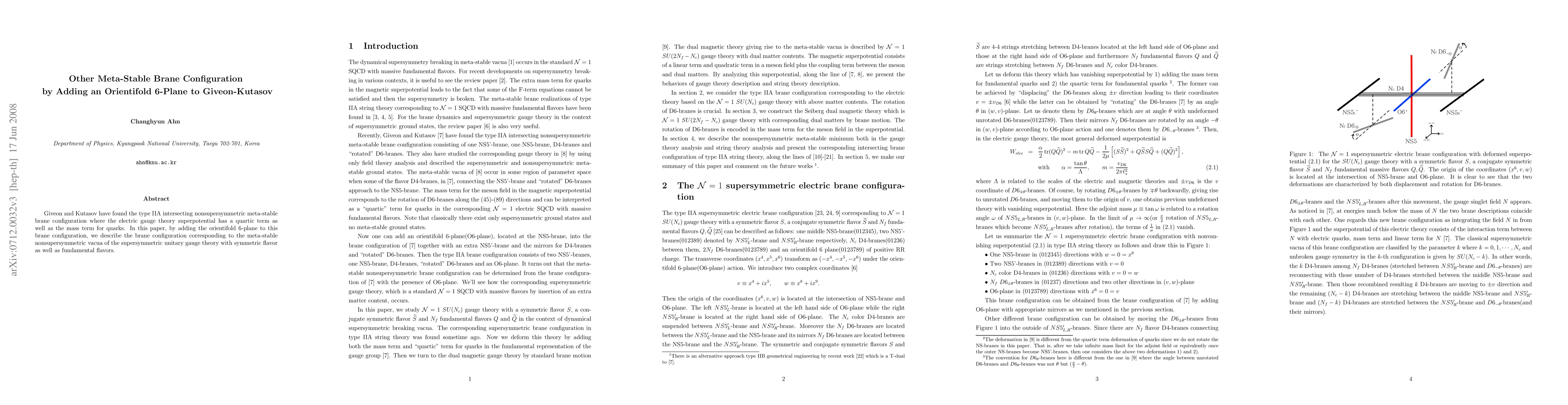 This paper explores a meta-stable brane configuration derived by incorporating an orientifold 6-plane into the Giveon-Kutasov setup, revealing a nonsupersymmetric vacuum for a supersymmetric unitary gauge theory with symmetric and fundamental flavors. The study extends the original configuration to include flavor symmetry and mass terms for quarks.