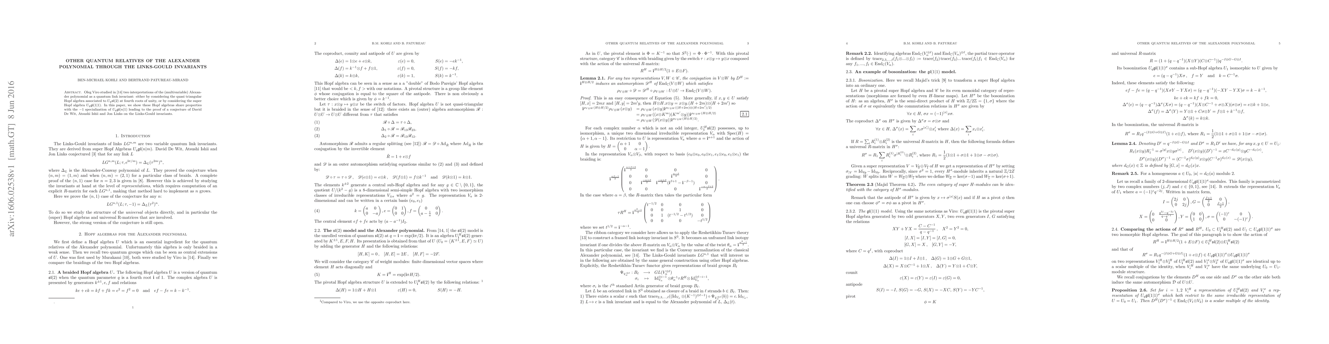 Oleg Viro studied in arXiv:math/0204290 two interpretations of the (multivariable) Alexander polynomial as a quantum link invariant: either by considering the quasi triangular Hopf algebra associated to $U_q sl(2)$ at fourth roots of unity, or by considering the super Hopf algebra $U_q gl(1|1)$. In this paper, we show these Hopf algebras share properties with the $-1$ specialization of $U_q gl(n|1)$ leading to the proof of a conjecture of David De Wit, Atsushi Ishii and Jon Links on the Links-Gould invariants.