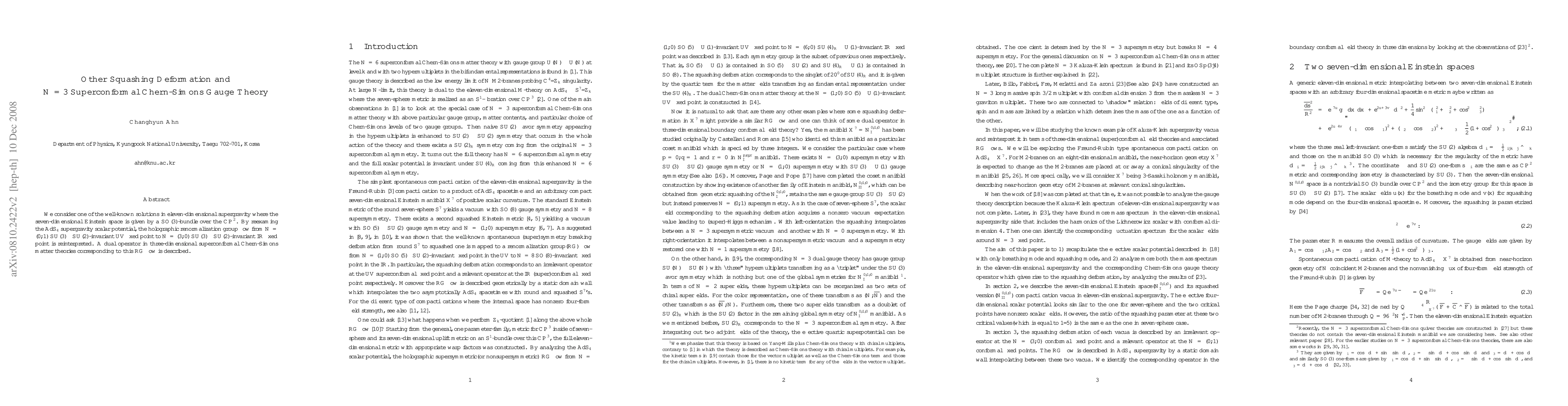 We consider one of the well-known solutions in eleven-dimensional supergravity where the seven-dimensional Einstein space is given by a SO(3)-bundle over the CP^2. By reexaming the AdS_4 supergravity scalar potential, the holographic renormalization group flow from N=(0,1) SU(3) x SU(2)-invariant UV fixed point to N=(3,0) SU(3) x SU(2)-invariant IR fixed point is reinterpreted. A dual operator in three-dimensional superconformal Chern-Simons matter theories corresponding to this RG flow is described.