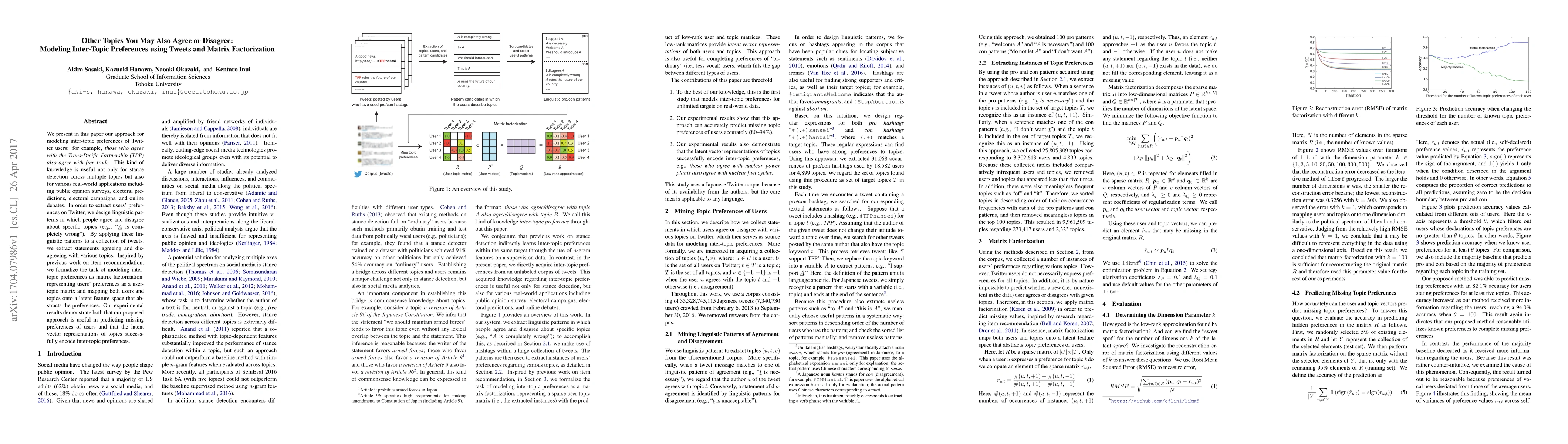This paper proposes a method to model Twitter users' inter-topic preferences using matrix factorization and linguistic patterns from tweets. The approach successfully predicts users' stances on multiple topics and encodes inter-topic preferences in latent vector representations.