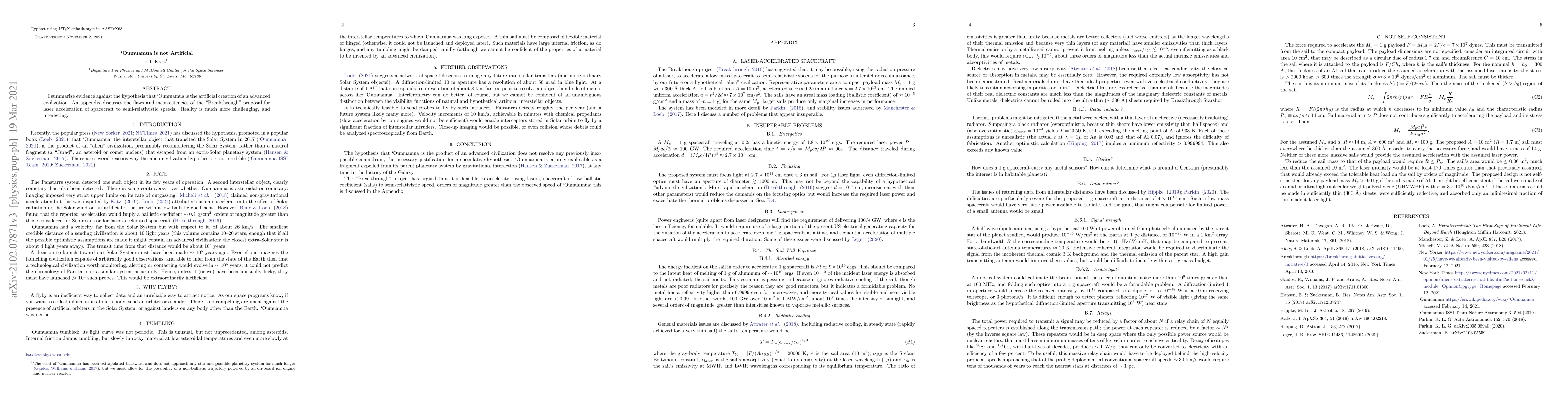 New research confirms that `Oumuamua is a natural asteroid, not an artificial spacecraft created by an advanced civilization. The study rejects the flawed 'Breakthrough' proposal for laser acceleration of space travel.
