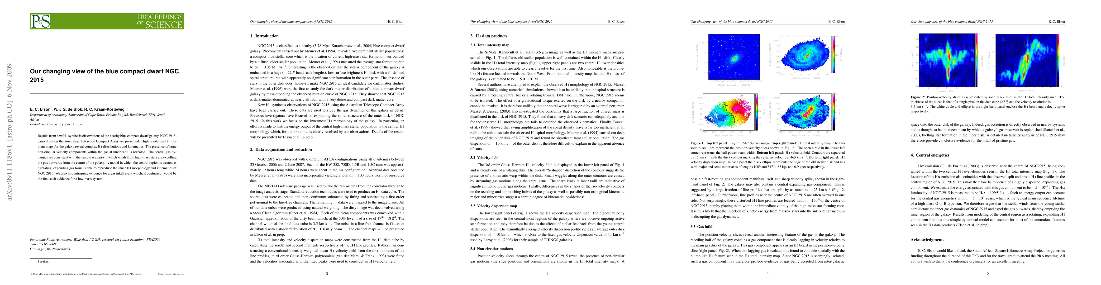 New HI observations of NGC 2915 reveal complex gas distributions and non-circular kinematics, suggesting gas expulsion by stellar winds. A rotating, expanding gas torus model fits the inner dynamics, and there is evidence for a potential gas infall event in this low-mass galaxy.