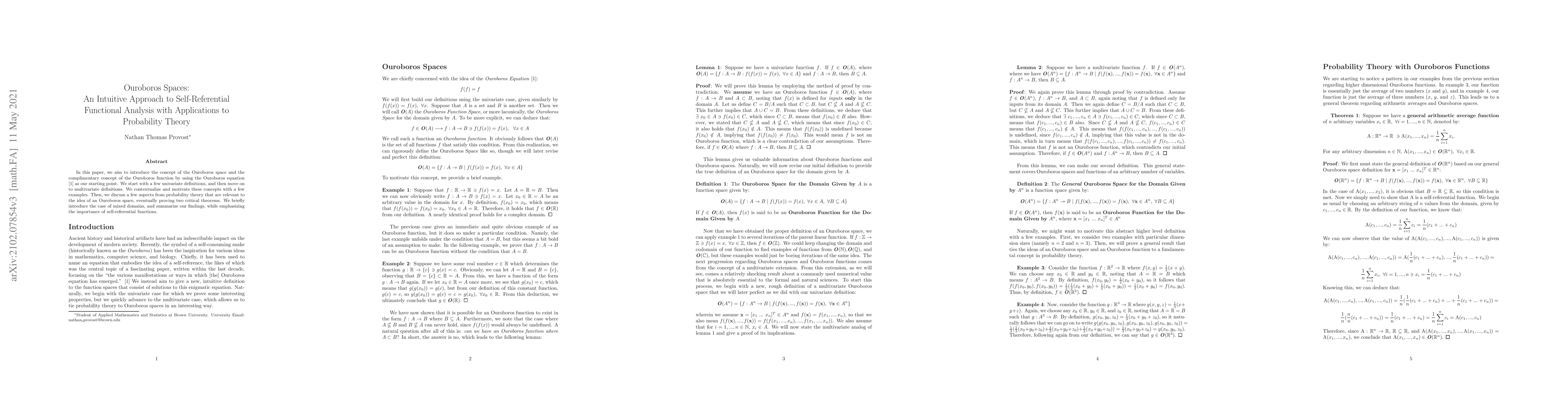 Researchers introduce the concept of Ouroboros spaces, a self-referential functional analysis framework with applications to probability theory, highlighting its potential importance in understanding complex systems.
