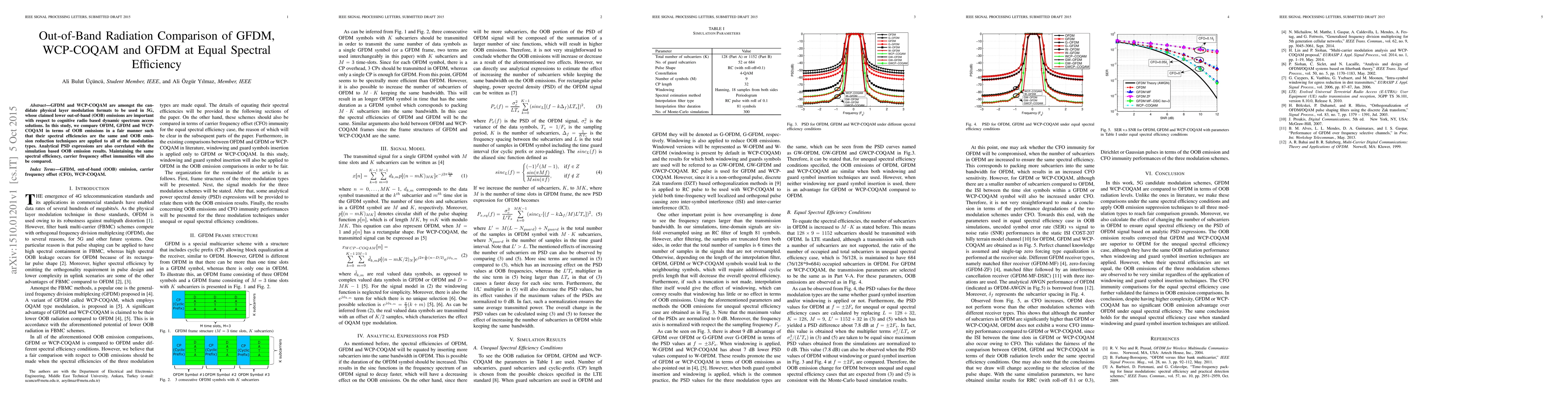 This study compares GFDM, WCP-COQAM, and OFDM in terms of out-of-band (OOB) emissions while maintaining equal spectral efficiency, applying OOB emission reduction techniques to all modulation types. Analytical and simulation results show comparative performance, with a focus on OOB emissions relevant to cognitive radio applications.