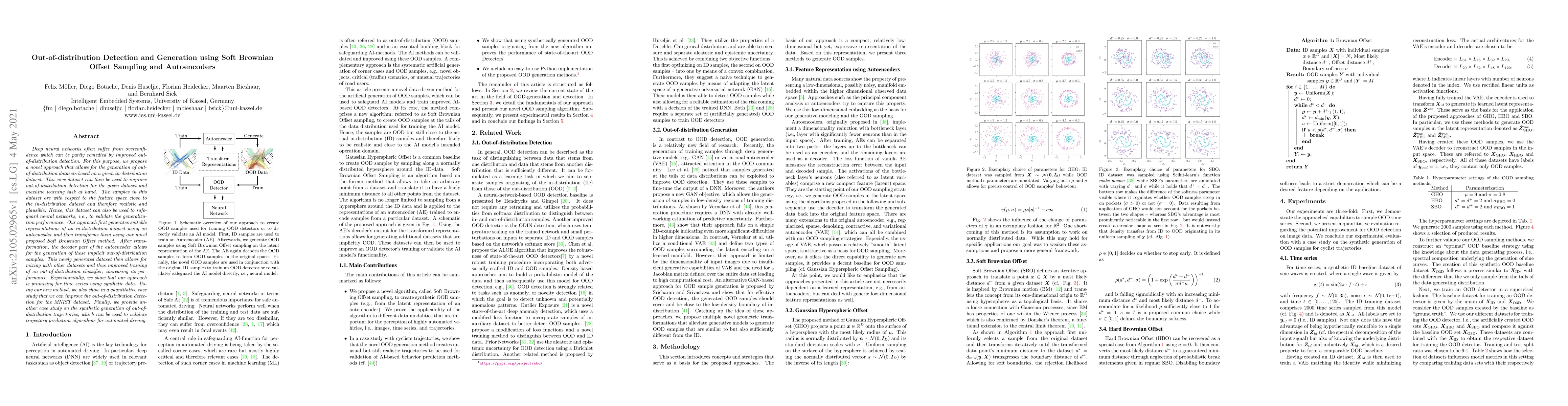 This paper proposes a novel method for generating out-of-distribution datasets using autoencoders and a Soft Brownian Offset technique, which improves out-of-distribution detection and safeguards neural network generalization. Experimental results show promising improvements in detection for the MNIST dataset and synthetic trajectory generation for automated driving validation.