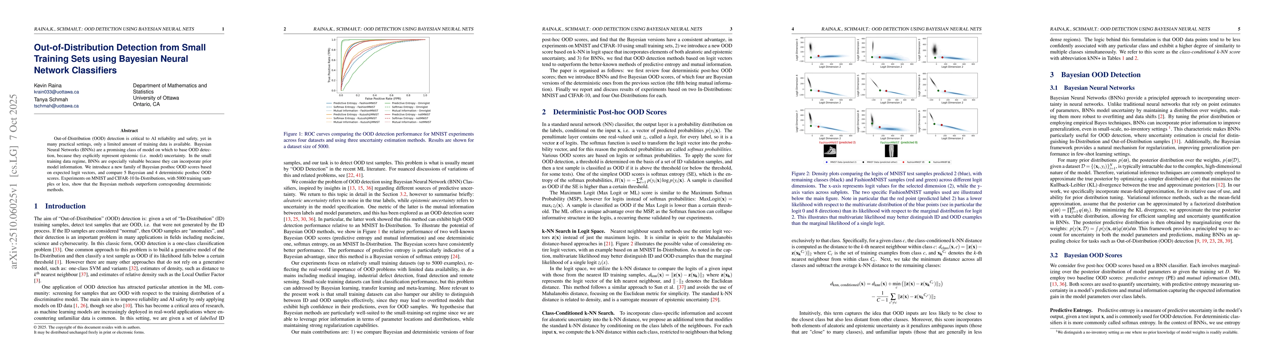 Out-of-Distribution (OOD) detection is critical to AI reliability and safety, yet in many practical settings, only a limited amount of training data is available. Bayesian Neural Networks (BNNs) are a promising class of model on which to base OOD detection, because they explicitly represent epistemic (i.e. model) uncertainty. In the small training data regime, BNNs are especially valuable because they can incorporate prior model information. We introduce a new family of Bayesian posthoc OOD scores based on expected logit vectors, and compare 5 Bayesian and 4 deterministic posthoc OOD scores. Experiments on MNIST and CIFAR-10 In-Distributions, with 5000 training samples or less, show that the Bayesian methods outperform corresponding deterministic methods.