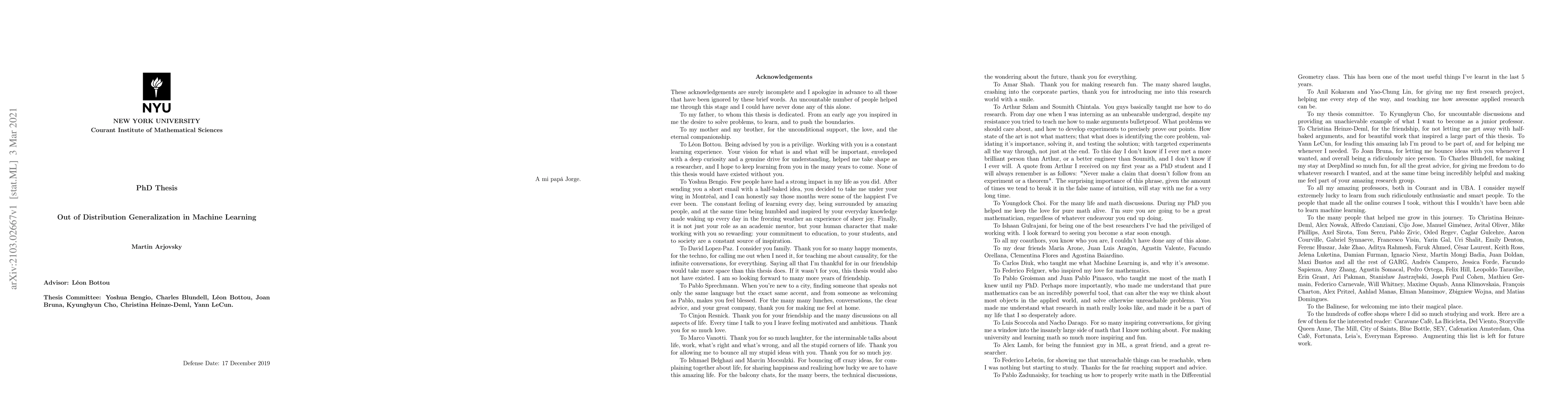 Machine learning has achieved tremendous success in a variety of domains in recent years. However, a lot of these success stories have been in places where the training and the testing distributions are extremely similar to each other. In everyday situations when models are tested in slightly different data than they were trained on, ML algorithms can fail spectacularly. This research attempts to formally define this problem, what sets of assumptions are reasonable to make in our data and what kind of guarantees we hope to obtain from them. Then, we focus on a certain class of out of distribution problems, their assumptions, and introduce simple algorithms that follow from these assumptions that are able to provide more reliable generalization. A central topic in the thesis is the strong link between discovering the causal structure of the data, finding features that are reliable (when using them to predict) regardless of their context, and out of distribution generalization.