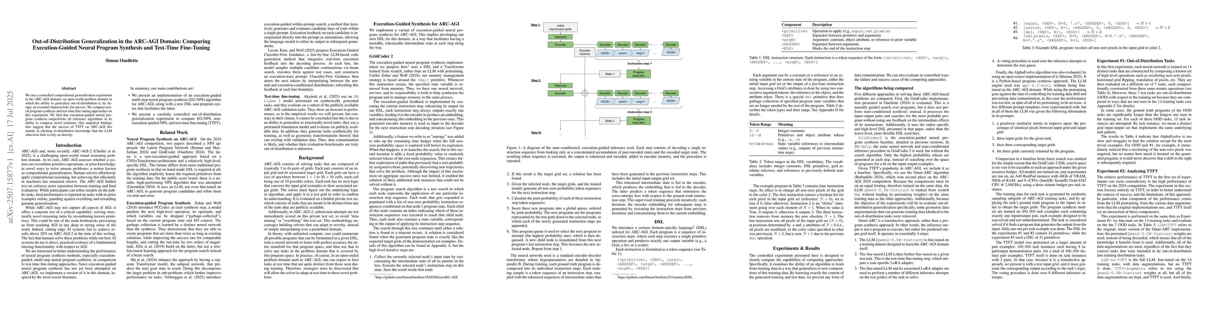 We run a controlled compositional generalization experiment in the ARC-AGI domain: an open-world problem domain in which the ability to generalize out-of-distribution is, by design, an essential characteristic for success. We compare neural program synthesis and test-time fine-tuning approaches on this experiment. We find that execution-guided neural program synthesis outperforms all reference algorithms in its ability to compose novel solutions. Our empirical findings also suggest that the success of TTFT on ARC-AGI lies mainly in eliciting in-distribution knowledge that the LLM otherwise fails to rely on directly.