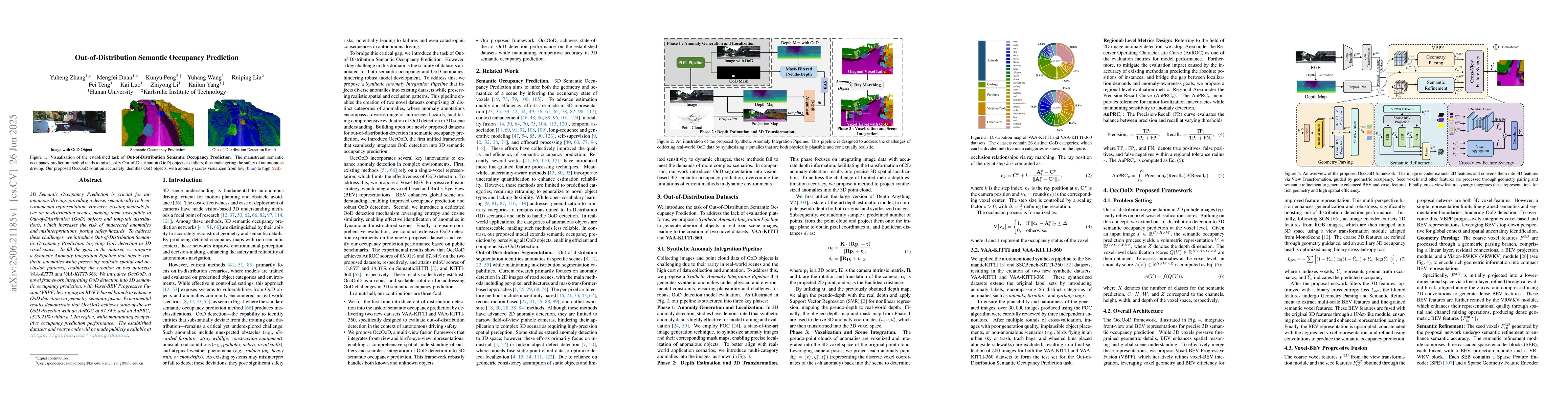 This work is the first to integrate OoD detection directly into 3D semantic occupancy prediction using a synthetic anomaly pipeline and a multi-scale fusion architecture, setting new benchmarks in the field.