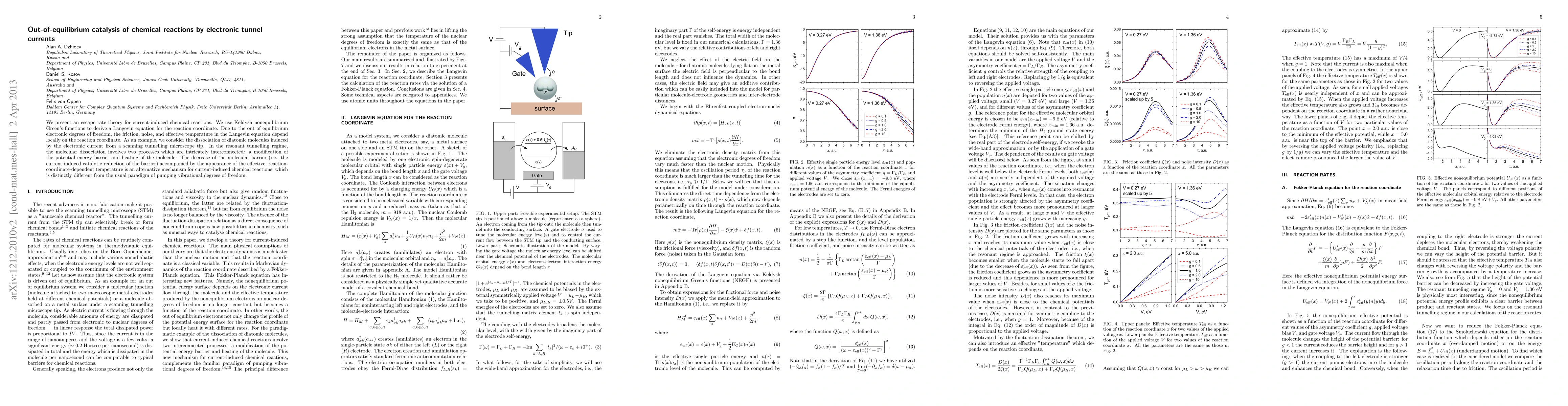This paper develops an escape rate theory to describe current-induced chemical reactions using Keldysh nonequilibrium Green's functions, showing that electronic tunnel currents can catalytically reduce potential energy barriers and induce dissociation in diatomic molecules, distinct from traditional vibrational excitation mechanisms.
