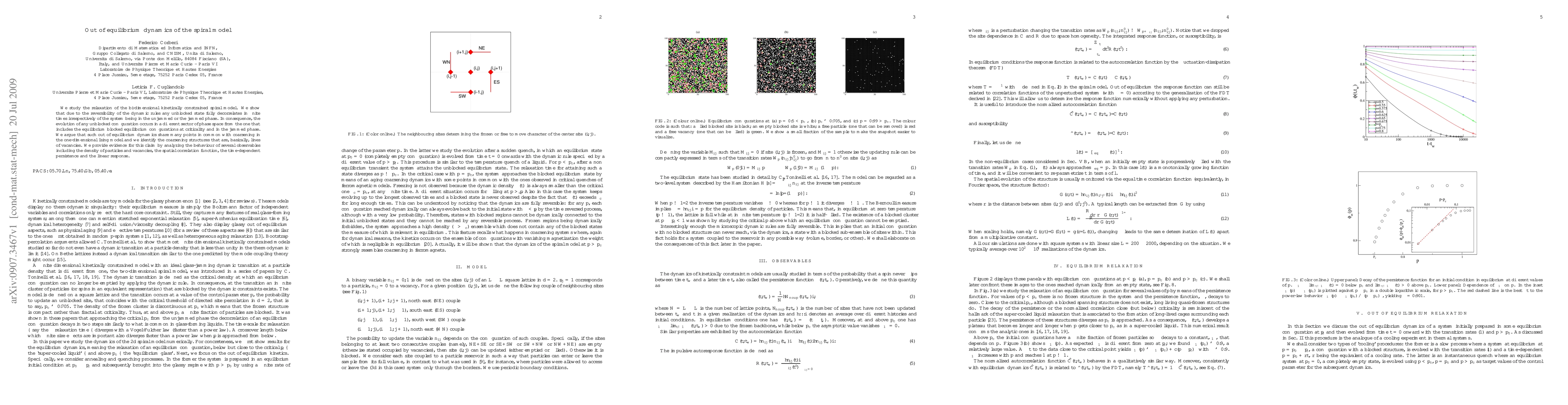 We study the relaxation of the bi-dimensional kinetically constrained spiral model. We show that due to the reversibility of the dynamic rules any unblocked state fully decorrelates in finite times irrespectively of the system being in the unjammed or the jammed phase. In consequence, the evolution of any unblocked configuration occurs in a different sector of phase space from the one that includes the equilibrium blocked equilibrium configurations at criticality and in the jammed phase. We argue that such out of equilibrium dynamics share many points in common with coarsening in the one-dimensional Ising model and we identify the coarsening structures that are, basically, lines of vacancies. We provide evidence for this claim by analyzing the behaviour of several observables including the density of particles and vacancies, the spatial correlation function, the time-dependent persistence and the linear response.