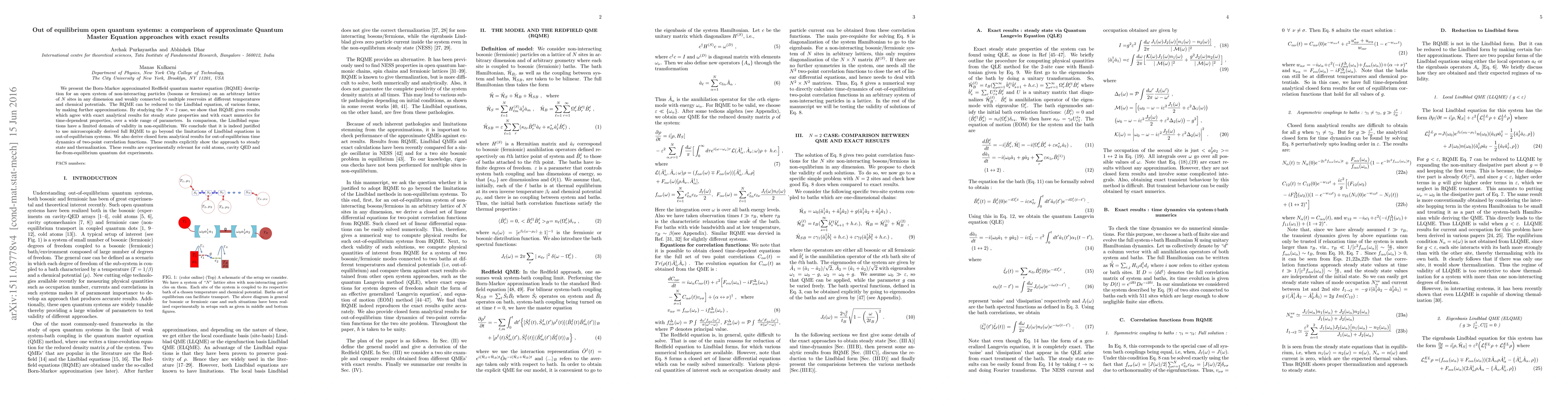 We present the Born-Markov approximated Redfield quantum master equation (RQME) description for an open system of non-interacting particles (bosons or fermions) on an arbitrary lattice of $N$ sites in any dimension and weakly connected to multiple reservoirs at different temperatures and chemical potentials. The RQME can be reduced to the Lindblad equation, of various forms, by making further approximations. By studying the $N=2$ case, we show that RQME gives results which agree with exact analytical results for steady state properties and with exact numerics for time-dependent properties, over a wide range of parameters. In comparison, the Lindblad equations have a limited domain of validity in non-equilibrium. We conclude that it is indeed justified to use microscopically derived full RQME to go beyond the limitations of Lindblad equations in out-of-equilibrium systems. We also derive closed form analytical results for out-of-equilibrium time dynamics of two-point correlation functions. These results explicitly show the approach to steady state and thermalization. These results are experimentally relevant for cold atoms, cavity QED and far-from-equilibrium quantum dot experiments.