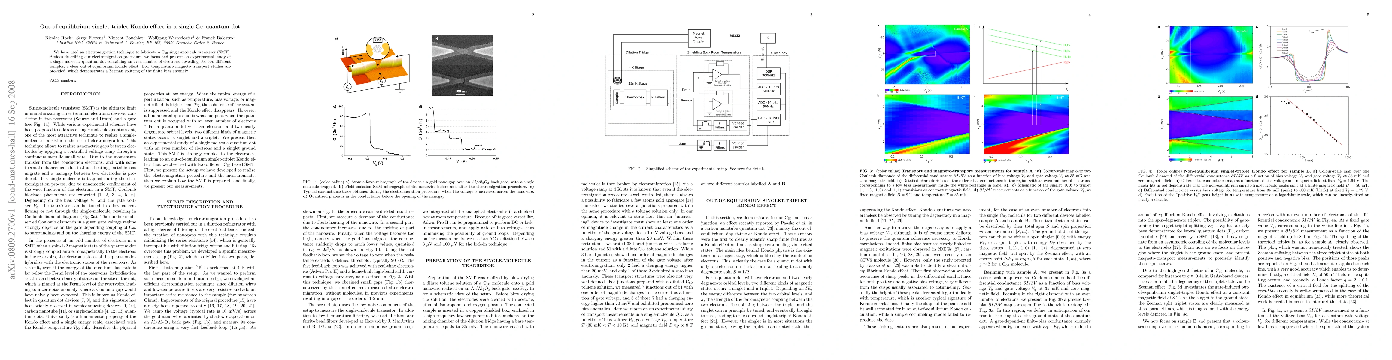 We have used an electromigration technique to fabricate a $\rm{C_{{60}}}$ single-molecule transistor (SMT). Besides describing our electromigration procedure, we focus and present an experimental study of a single molecule quantum dot containing an even number of electrons, revealing, for two different samples, a clear out-of-equilibrium Kondo effect. Low temperature magneto-transport studies are provided, which demonstrates a Zeeman splitting of the finite bias anomaly.
