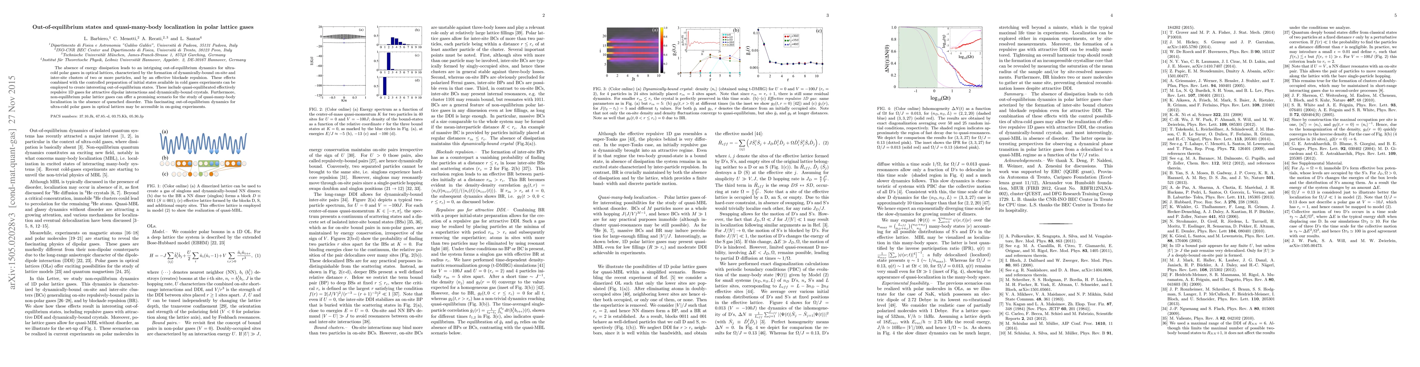 This paper explores the out-of-equilibrium dynamics of ultracold polar gases in optical lattices, revealing the formation of dynamically-bound clusters and effective blockade repulsion. It proposes the creation of quasi-equilibrated repulsive gases and dynamically-bound crystals, and suggests a promising scenario for studying many-body localization without quenched disorder.