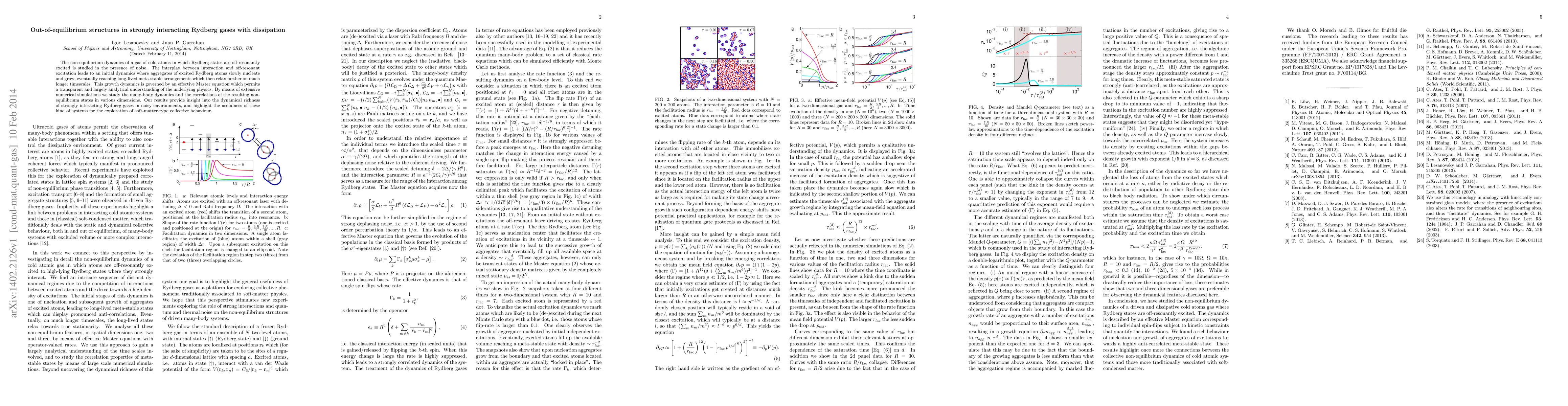 This paper investigates the non-equilibrium dynamics of Rydberg gases under off-resonant excitation and noise, revealing the formation of meta-stable aggregates governed by an effective Master equation. Numerical simulations highlight the collective behavior and potential for exploring soft-matter dynamics in these systems.