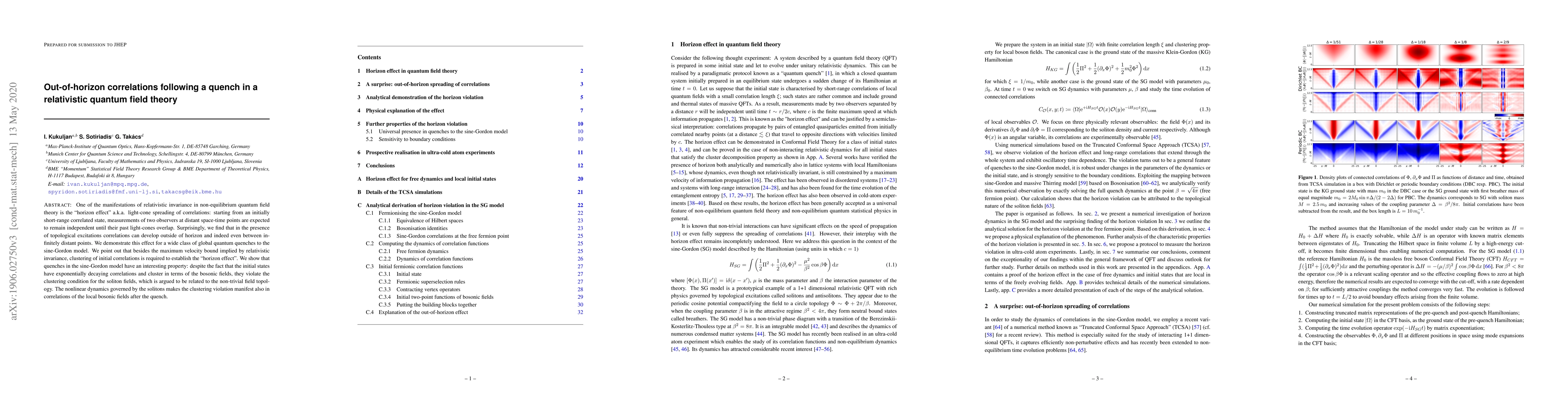 Research shows that correlations in a relativistic quantum field theory can extend beyond the horizon of distant observers, even at infinite distances, due to topological excitations and non-trivial field topology.