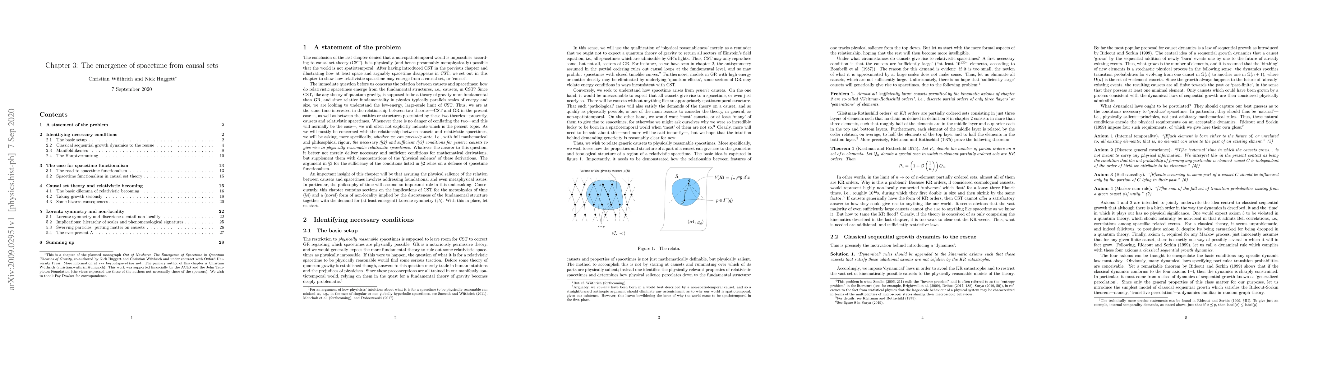 This chapter explores how spacetime emerges in causal set theory, demonstrating a deep connection to philosophical concerns. It provides a new perspective on the nature of spacetime and its relationship with quantum theories of gravity.