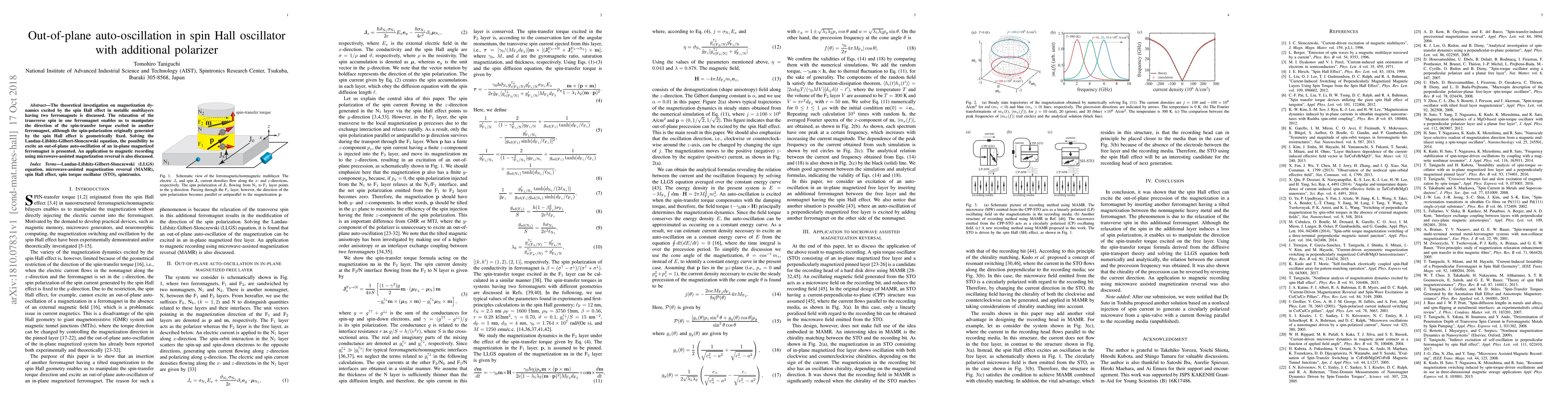 The theoretical investigation on magnetization dynamics excited by the spin Hall effect in metallic multilayers having two ferromagnets is discussed. The relaxation of the transverse spin in one ferromagnet enables us to manipulate the direction of the spin-transfer torque excited in another ferromagnet, although the spin-polarization originally generated by the spin Hall effect is geometrically fixed. Solving the Landau-Lifshitz-Gilbert-Slonczewski equation, the possibility to excite an out-of-plane auto-oscillation of an in-plane magnetized ferromagnet is presented. An application to magnetic recording using microwave-assisted magnetization reversal is also discussed.