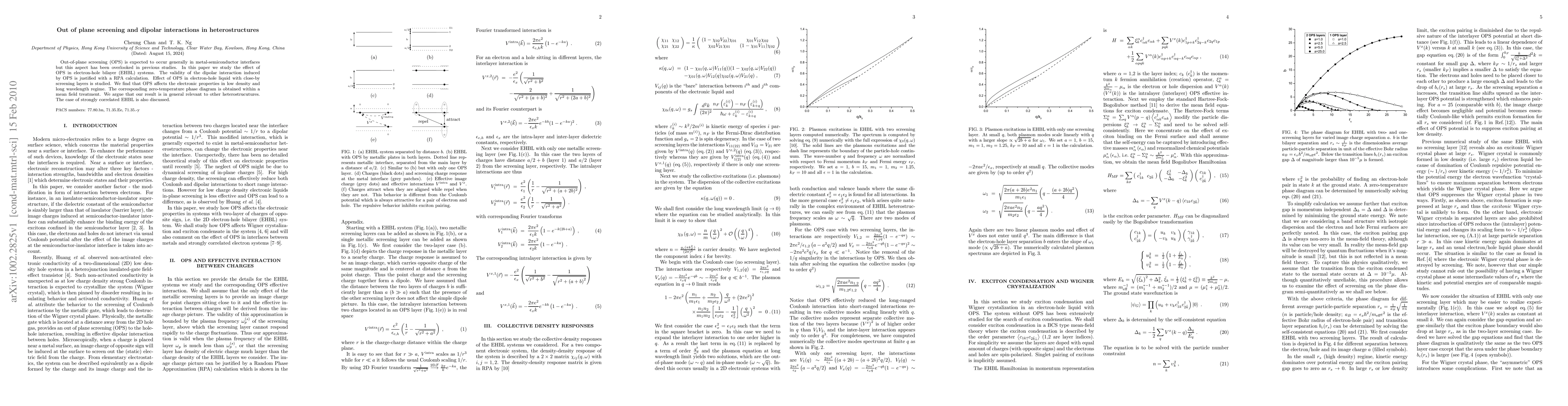 Out-of-plane screening (OPS) is expected to occur generally in metal-semiconductor interfaces but this aspect has been overlooked in previous studies. In this paper we study the effect of OPS in electron-hole bilayer (EHBL) systems. The validity of the dipolar interaction induced by OPS is justified with a RPA calculation. Effect of OPS in electron-hole liquid with close-by screening layers is studied. We find that OPS affects the electronic properties in low density and long wavelength regime. The corresponding zero-temperature phase diagram is obtained within a mean field treatment. We argue that our result is in general relevant to other heterostrucutures. The case of strongly correlated EHBL is also discussed.