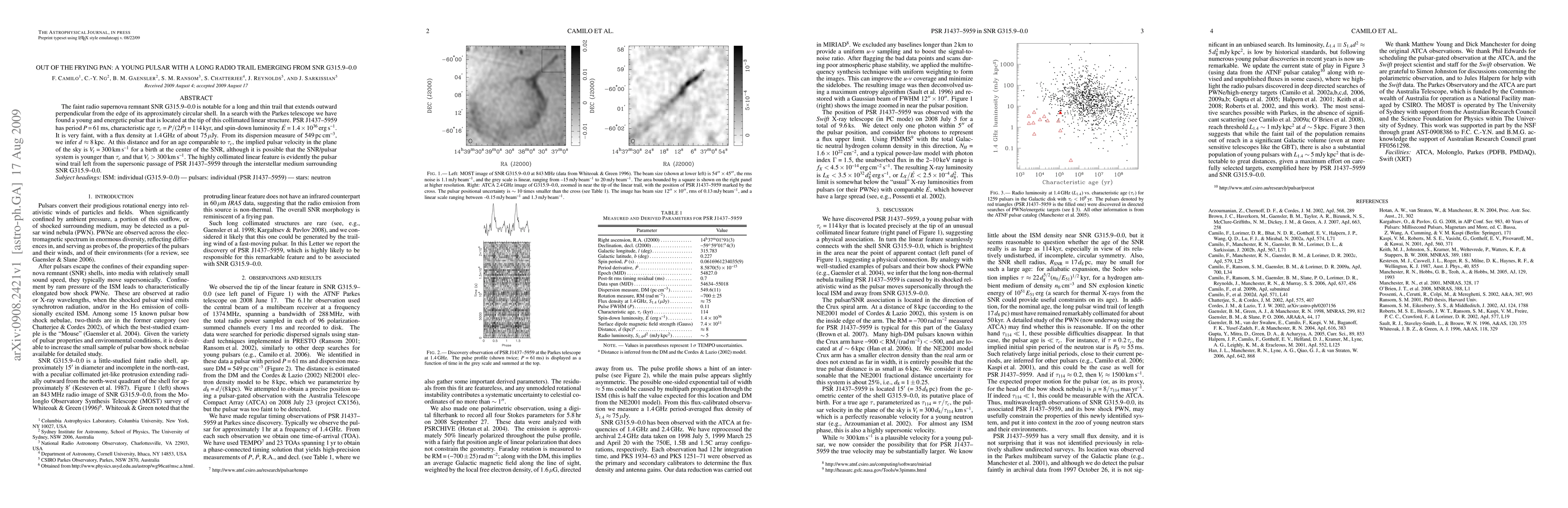 The faint radio supernova remnant SNR G315.9-0.0 is notable for a long and thin trail that extends outward perpendicular from the edge of its approximately circular shell. In a search with the Parkes telescope we have found a young and energetic pulsar that is located at the tip of this collimated linear structure. PSR J1437-5959 has period P = 61 ms, characteristic age tau_c = 114 kyr, and spin-down luminosity dE/dt = 1.4e36 erg/s. It is very faint, with a flux density at 1.4 GHz of about 75 uJy. From its dispersion measure of 549 pc/cc, we infer d ~ 8 kpc. At this distance and for an age comparable to tau_c, the implied pulsar velocity in the plane of the sky is V_t = 300 km/s for a birth at the center of the SNR, although it is possible that the SNR/pulsar system is younger than tau_c and that V_t > 300 km/s. The highly collimated linear feature is evidently the pulsar wind trail left from the supersonic passage of PSR J1437-5959 through the interstellar medium surrounding SNR G315.9-0.0.