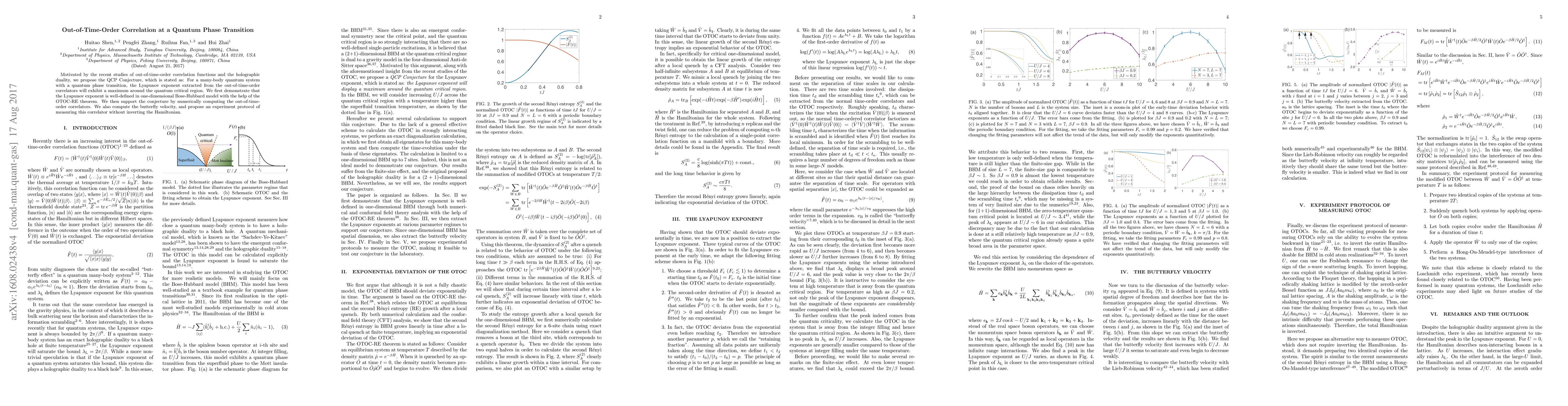 This paper numerically investigates out-of-time-order correlation functions in the one-dimensional Bose-Hubbard model to support the conjecture that quantum phase transitions exhibit a peak in the Lyapunov exponent. The study finds an exponential behavior in the correlation function, supporting the conjecture and revealing the butterfly velocity in cold atom systems.