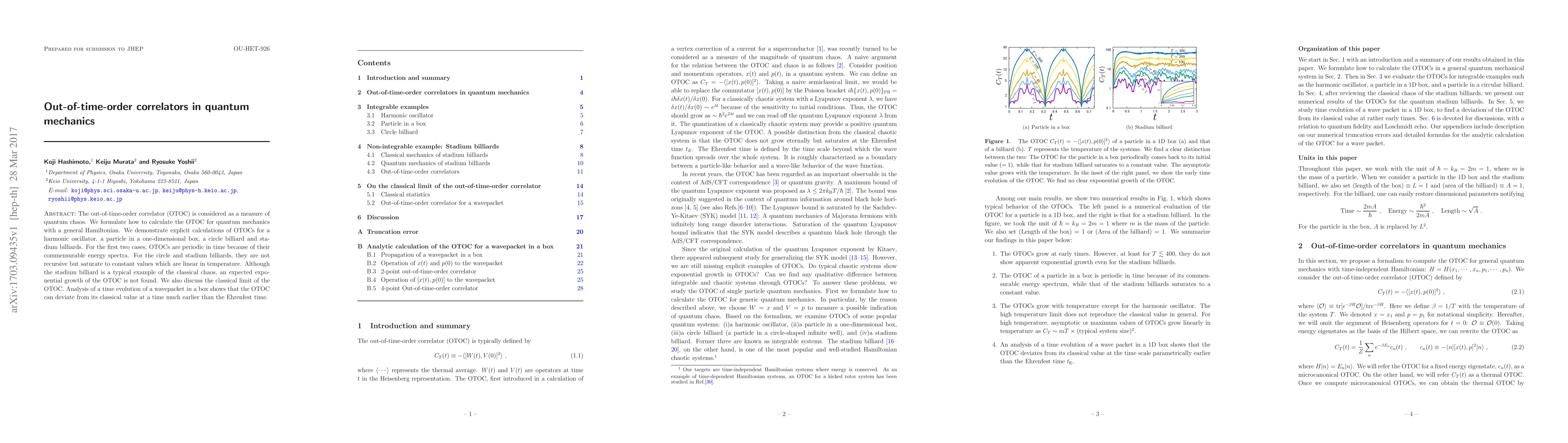 This paper explores the out-of-time-order correlator (OTOC) as a measure of quantum chaos, calculating it for various quantum systems and finding that while OTOCs in harmonic oscillators and particles in boxes exhibit periodic behavior, those in billiard systems saturate to constant values. The study also reveals that quantum systems can deviate from classical behavior earlier than expected.