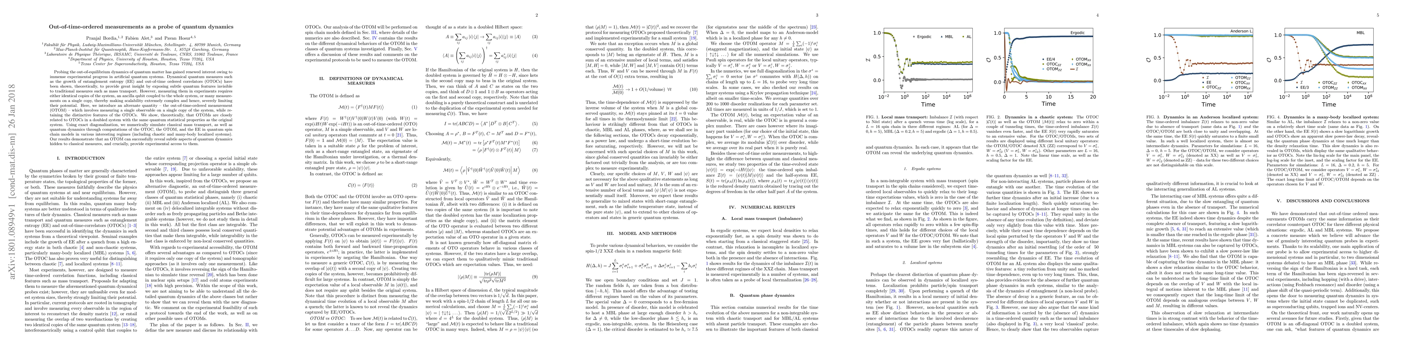 Probing the out-of-equilibrium dynamics of quantum matter has gained renewed interest owing to immense experimental progress in artifcial quantum systems. Dynamical quantum measures such as the growth of entanglement entropy (EE) and out-of-time ordered correlators (OTOCs) have been shown, theoretically, to provide great insight by exposing subtle quantum features invisible to traditional measures such as mass transport. However, measuring them in experiments requires either identical copies of the system, an ancilla qubit coupled to the whole system, or many measurements on a single copy, thereby making scalability extremely complex and hence, severely limiting their potential. Here, we introduce an alternate quantity $-$ the out-of-time-ordered measurement (OTOM) $-$ which involves measuring a single observable on a single copy of the system, while retaining the distinctive features of the OTOCs. We show, theoretically, that OTOMs are closely related to OTOCs in a doubled system with the same quantum statistical properties as the original system. Using exact diagonalization, we numerically simulate classical mass transport, as well as quantum dynamics through computations of the OTOC, the OTOM, and the EE in quantum spin chain models in various interesting regimes (including chaotic and many-body localized systems). Our results demonstrate that an OTOM can successfully reveal subtle aspects of quantum dynamics hidden to classical measures, and crucially, provide experimental access to them.