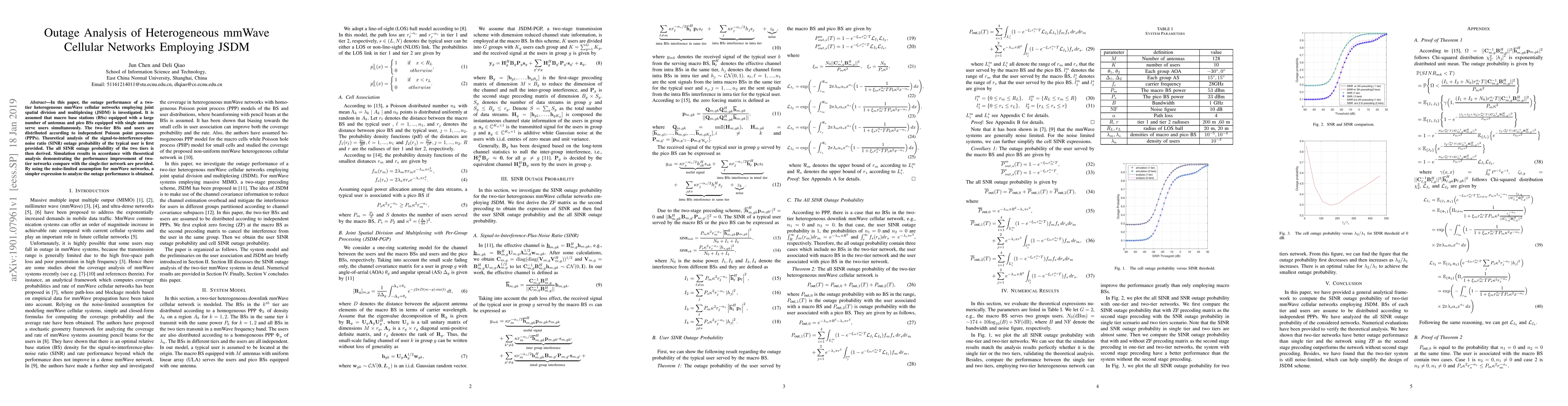 This paper investigates the outage performance of a two-tier heterogeneous mmWave cellular network using joint spatial division and multiplexing (JSDM). Theoretical analysis provides expressions for the SINR outage probability, and simulation results show performance improvements over single-tier networks, leveraging a noise-limited assumption for mmWave conditions.