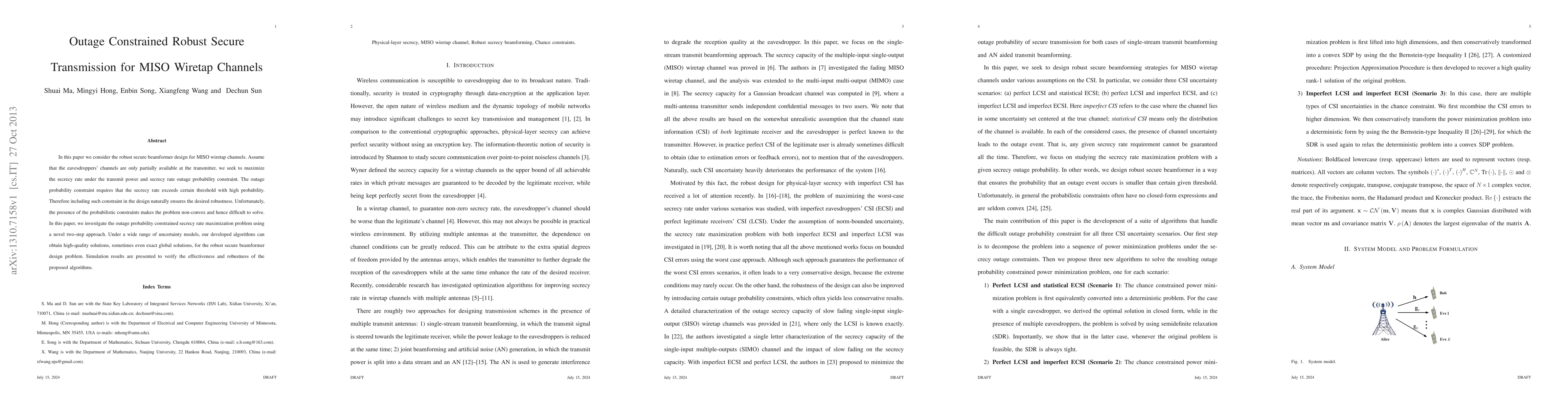 This paper addresses the design of robust secure beamformers for MISO wiretap channels under partial eavesdropper channel knowledge, focusing on maximizing the secrecy rate while meeting transmit power and secrecy rate outage probability constraints. A novel two-step approach is proposed to tackle the non-convex problem, achieving high-quality solutions and demonstrating effectiveness through simulations.