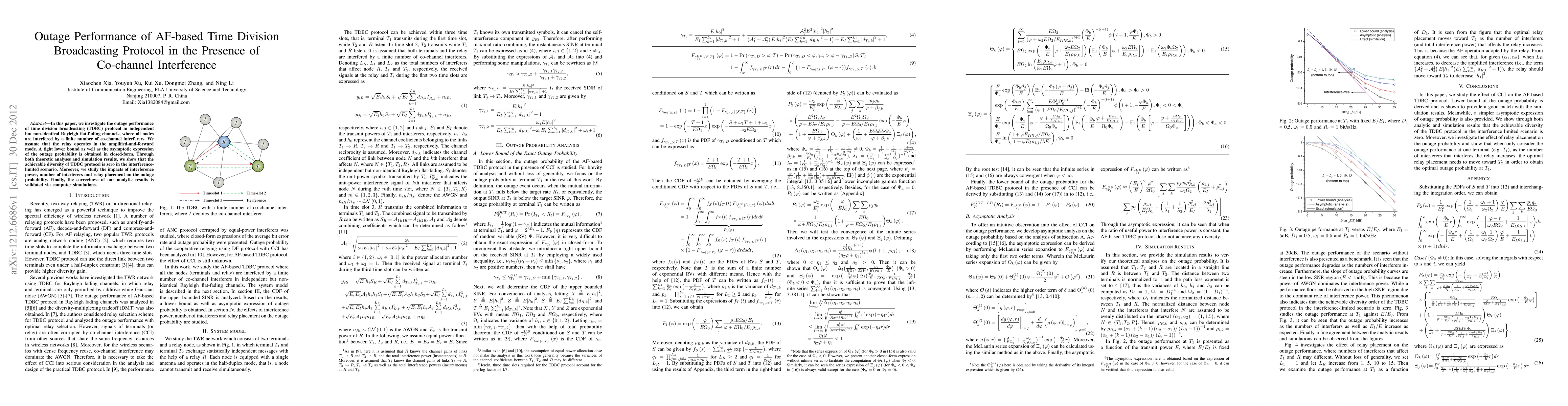 In this paper, we investigate the outage performance of time division broadcasting (TDBC) protocol in independent but non-identical Rayleigh flat-fading channels, where all nodes are interfered by a finite number of co-channel interferers. We assume that the relay operates in the amplified-and-forward mode. A tight lower bound as well as the asymptotic expression of the outage probability is obtained in closed-form. Through both theoretic analyses and simulation results, we show that the achievable diversity of TDBC protocol is zero in the interference-limited scenario. Moreover, we study the impacts of interference power, number of interferers and relay placement on the outage probability. Finally, the correctness of our analytic results is validated via computer simulations.