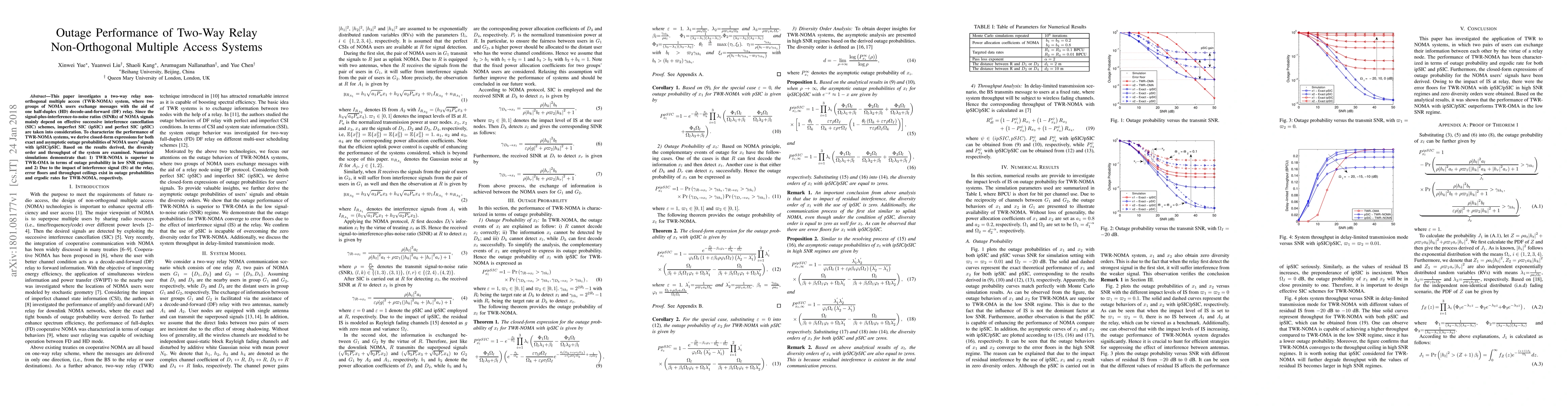 A research paper investigates the performance of two-way relay non-orthogonal multiple access systems, finding that these systems outperform traditional methods in low SNR regimes but have error floors and throughput ceilings due to interference signals.