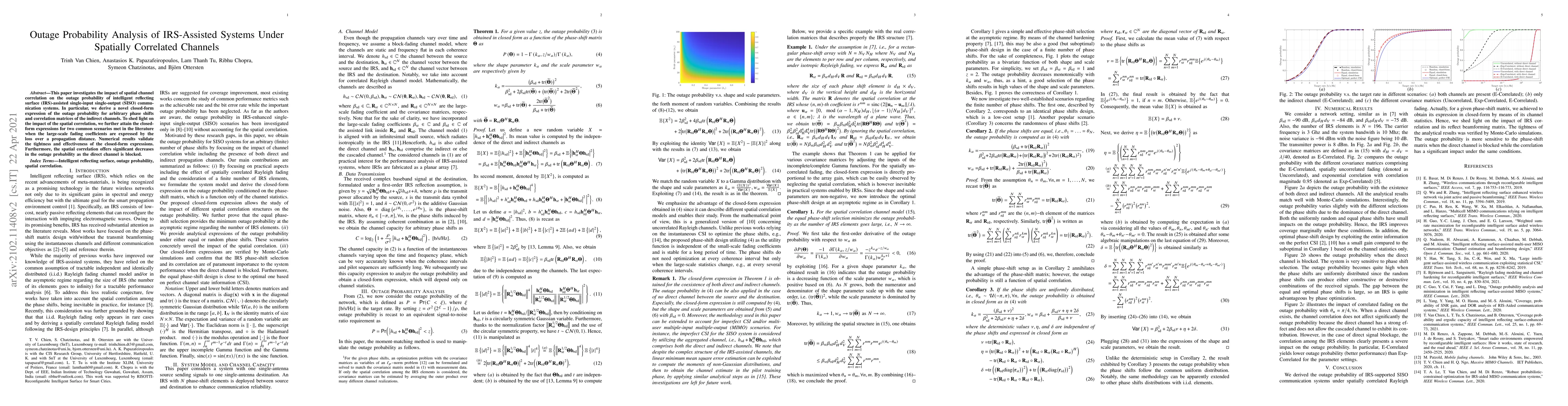 The paper derives a closed-form expression for the outage probability of IRS-assisted SISO systems under spatially correlated channels using moment-matching methods and matching the covariance matrix model with measurement data.