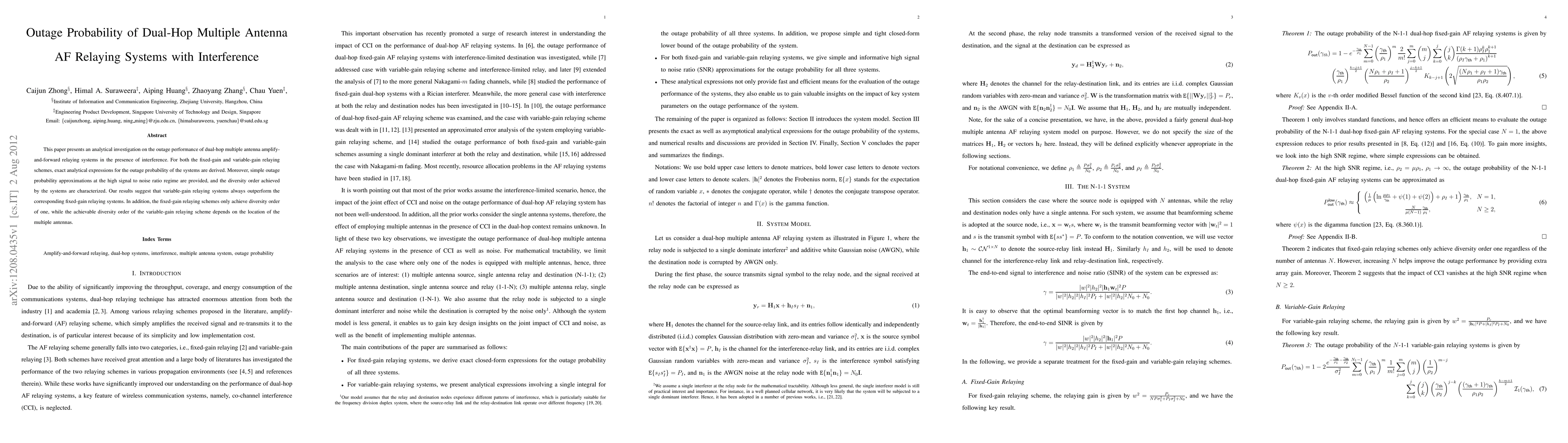 The work presented a novel analytical framework for evaluating the performance of dual-hop relay systems in the presence of interference.