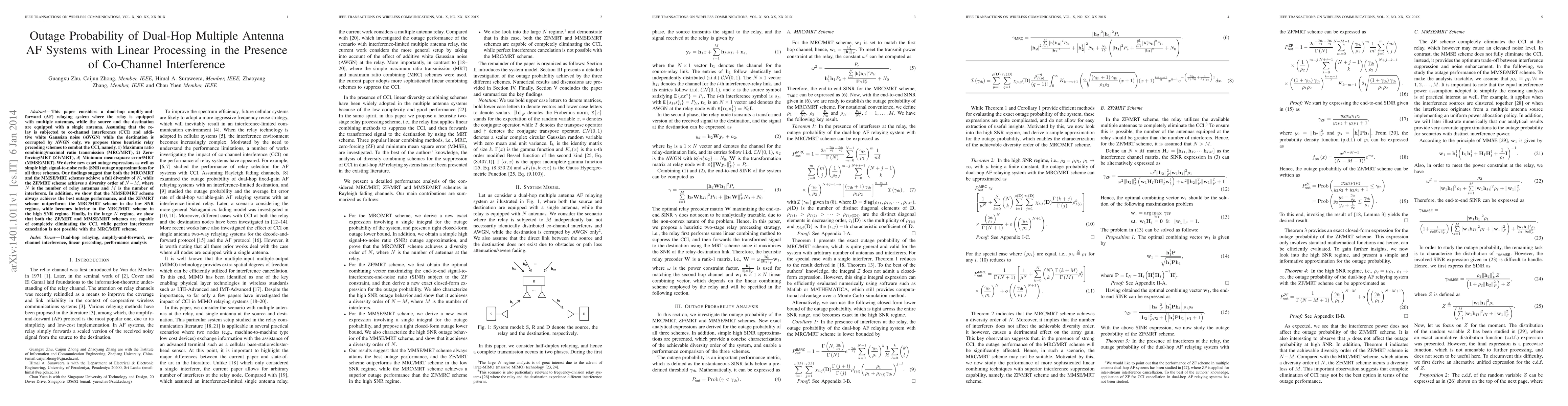 This paper investigates dual-hop AF relay systems with multiple relay antennas under co-channel interference and AWGN, proposing three precoding schemes to mitigate interference. It finds that MMSE/MRT achieves the best performance, while MRC/MRT and MMSE/MRT provide full diversity, and ZF/MRT offers a diversity order of N-M.