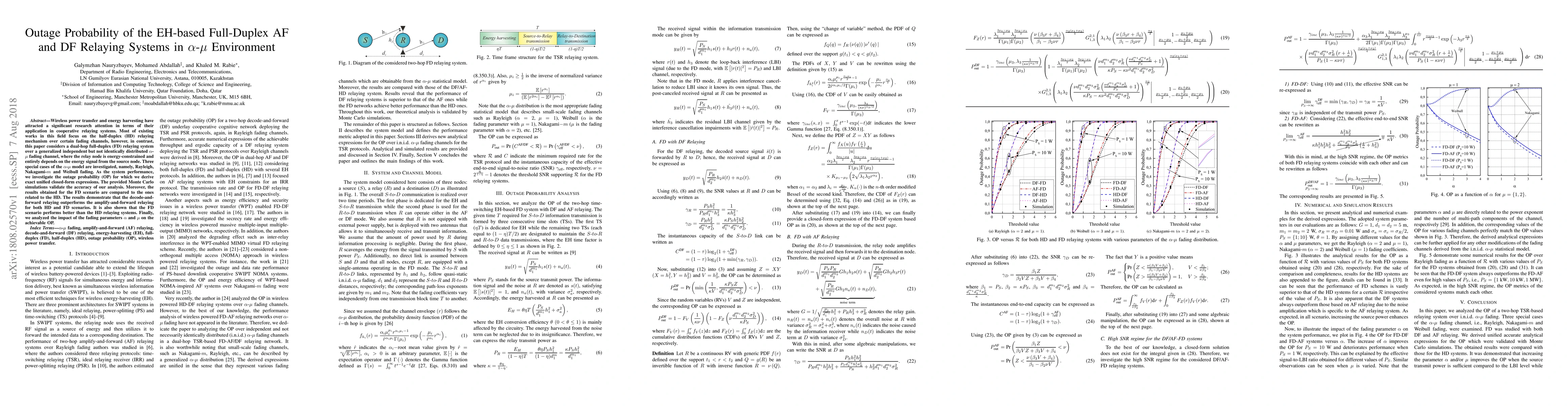 This paper investigates the outage probability in full-duplex (FD) and half-duplex (HD) relaying systems using energy harvesting (EH) over generalized \alpha-\mu fading channels. It shows that decode-and-forward relaying outperforms amplify-and-forward relaying, and FD relaying generally performs better than HD relaying.