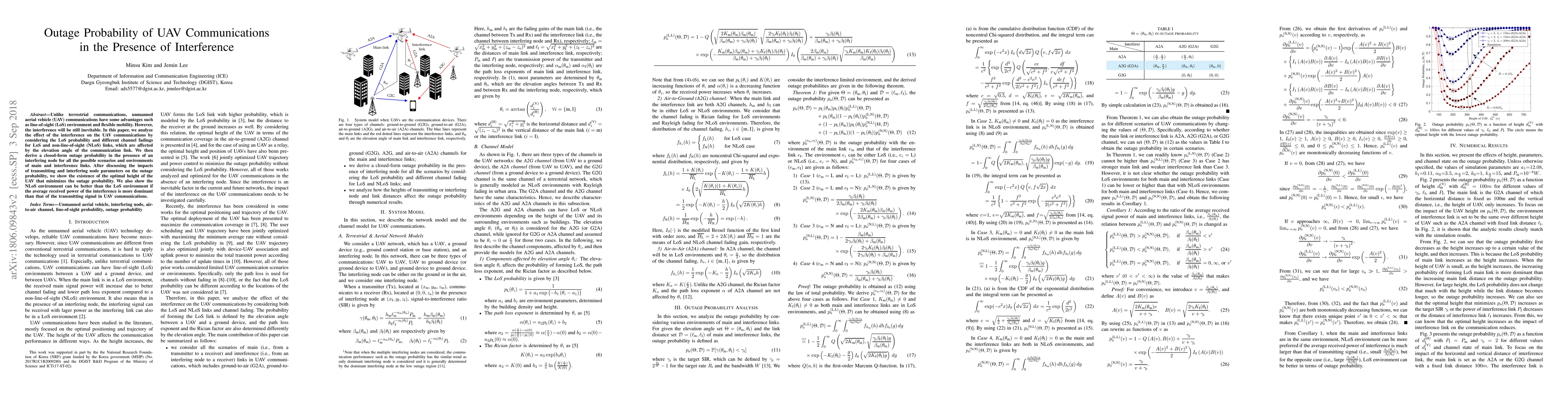 This paper analyzes the impact of interference on UAV communications, deriving a closed-form outage probability model that considers LoS and NLoS channel conditions. It identifies an optimal UAV height minimizing outage probability and suggests that NLoS environments may outperform LoS if interference is stronger.