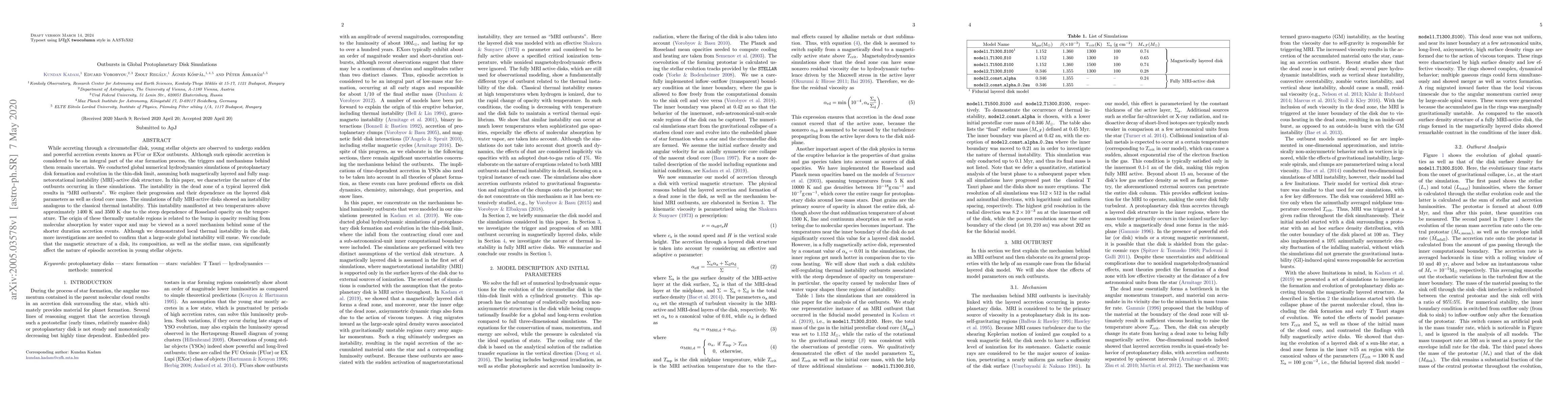 Research finds that global simulations of protoplanetary disk formation reveal two types of outbursts: MRI outbursts triggered by magnetic layering and thermal instabilities driven by temperature fluctuations in fully MRI-active disks.