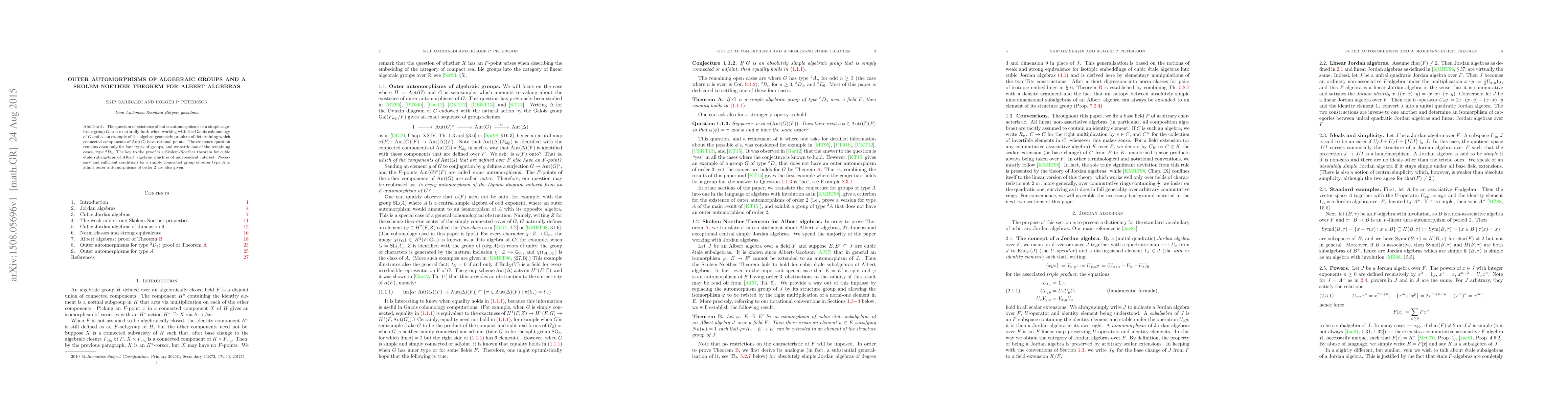 This paper addresses the existence of outer automorphisms in simple algebraic groups, focusing on type $^3D_4$ groups. It proves the Skolem-Noether theorem for cubic étale subalgebras of Albert algebras, providing a solution to one of the remaining open cases and offering conditions for simply connected groups of type $A$ to have outer automorphisms of order 2.