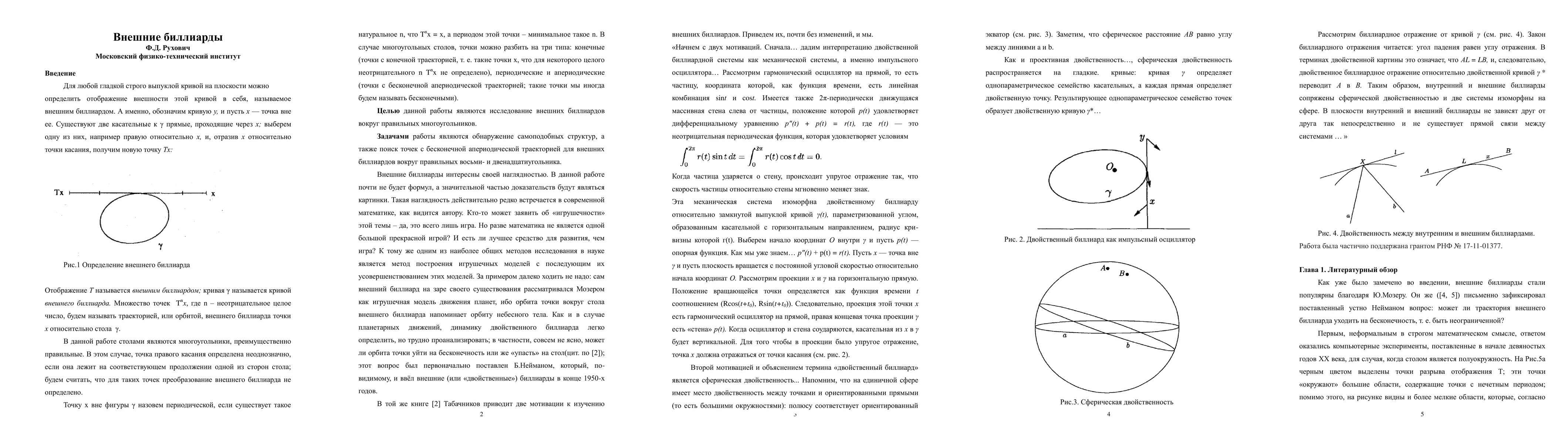 This paper investigates outer billiards outside regular polygons, focusing on periodic points for strictly convex tables and regular n-gons. Key findings include the existence of aperiodic points for outer billiards outside regular octagons and dodecagons, the full measure of periodic points for the octagon, and a complete list of possible periods for the octagon.